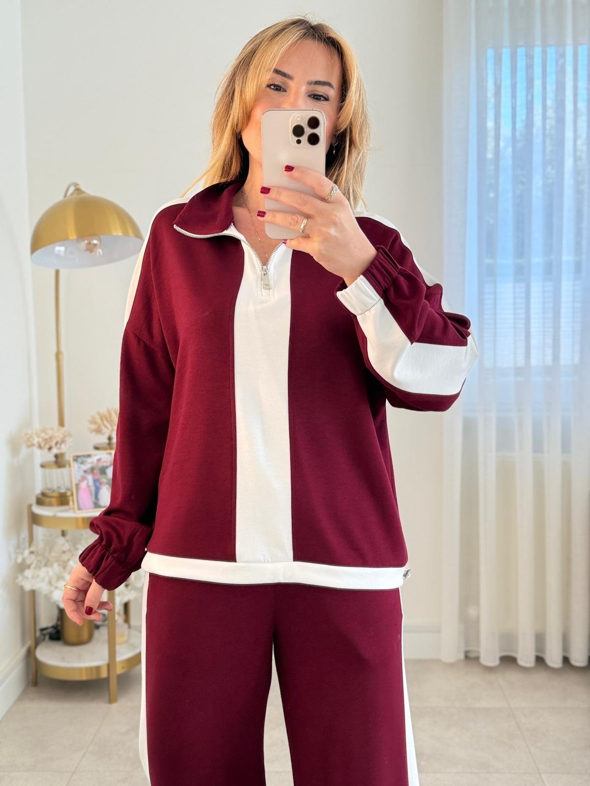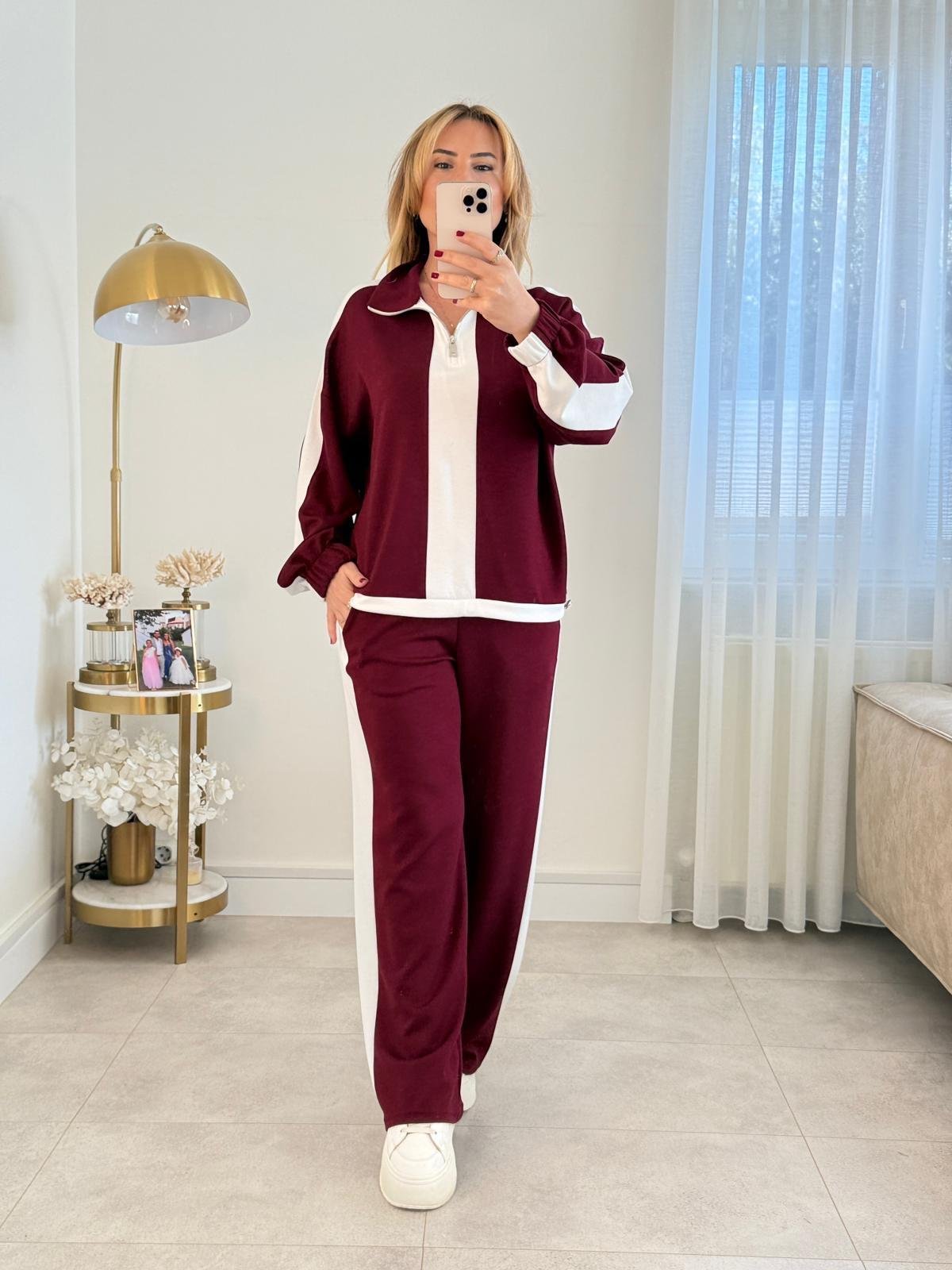 Fermuar detaylı takım, hem günlük rahatlık arayanlara hem de spor şıklığı sevenlere özel olarak tasarlandı. Modern yaka formu, takıma zarif bir duruş kazandırırken; yumuşak ve kaliteli kumaşı gün boyu konfor sunar.