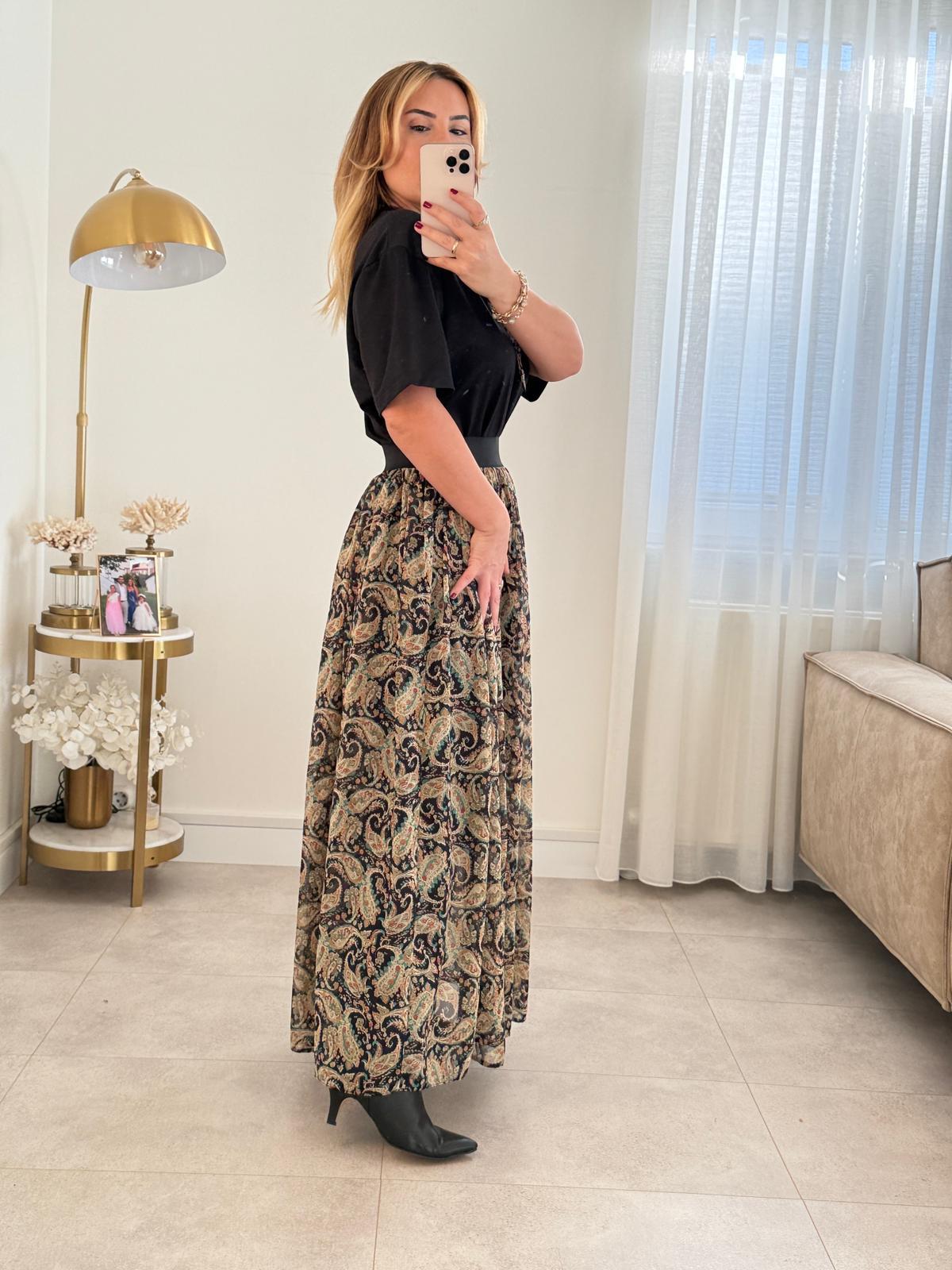 Zarif ve feminen detaylarıyla öne çıkan 8743 Şal Desen Astarlı Etek , şıklığı ve konforu bir arada sunar. Şal desenli kumaşı ile hem özel günlerde hem de şık günlük kombinlerde tarzınızı tamamlar.