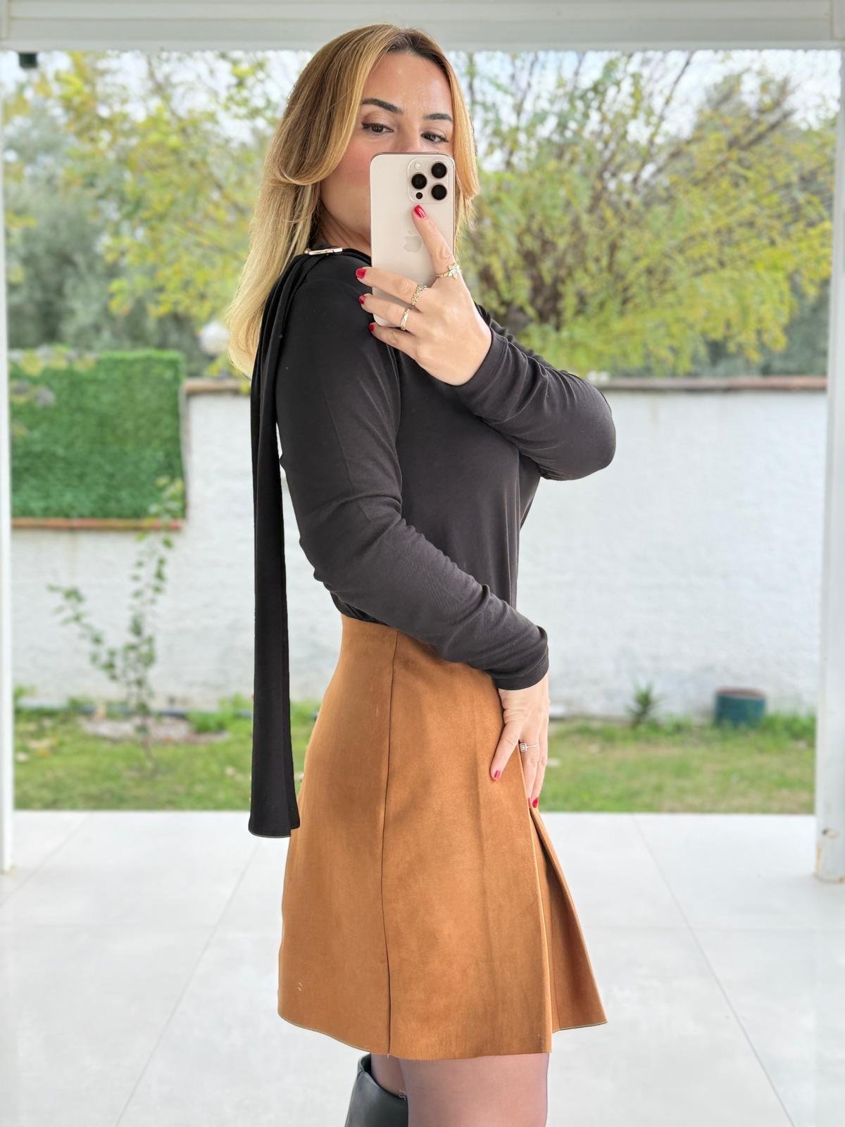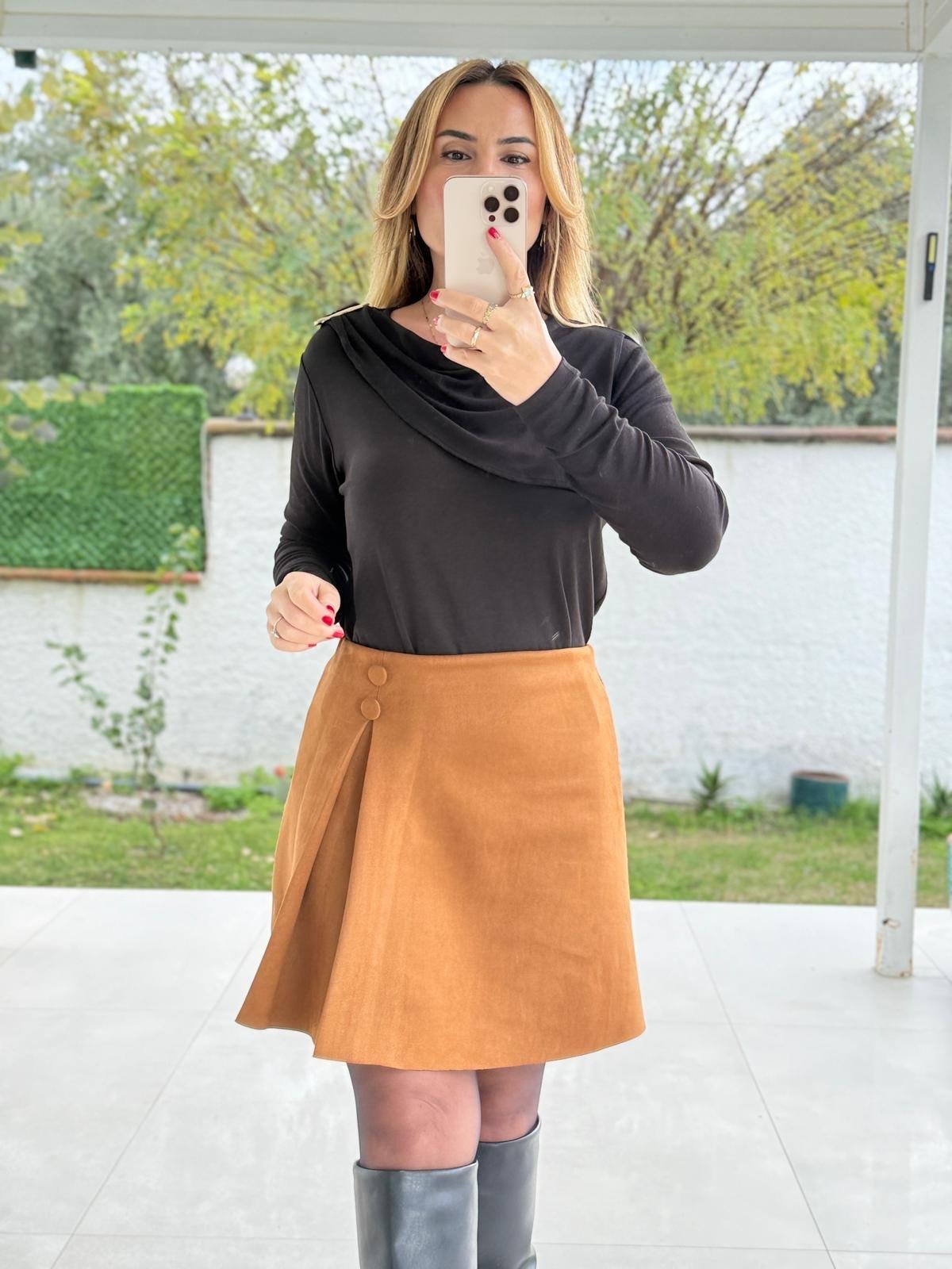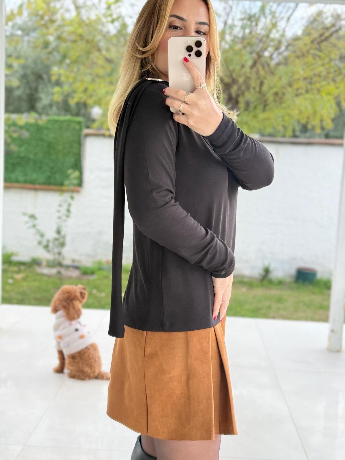 8810 Siyah Şal Detay Bluz (SK-08810)