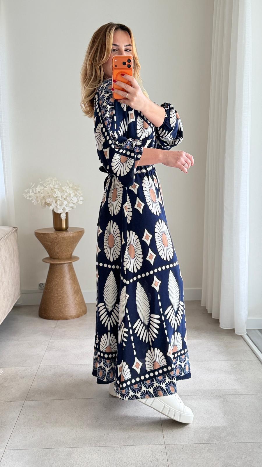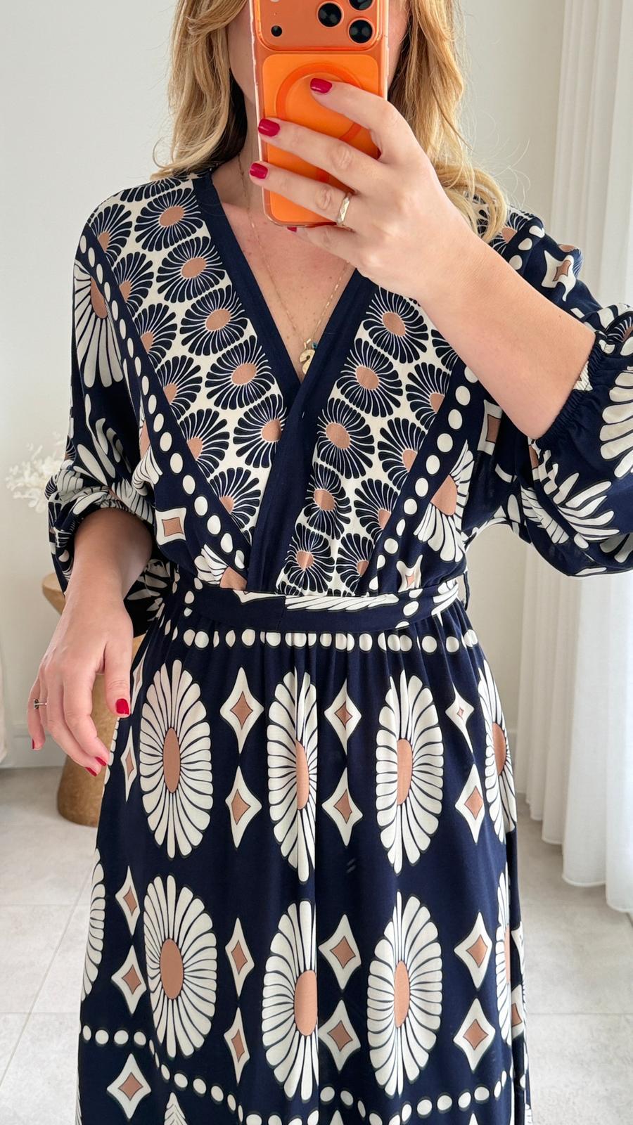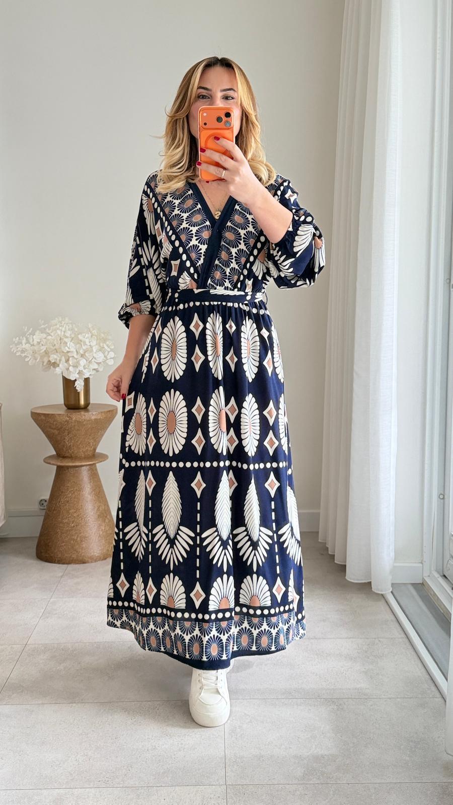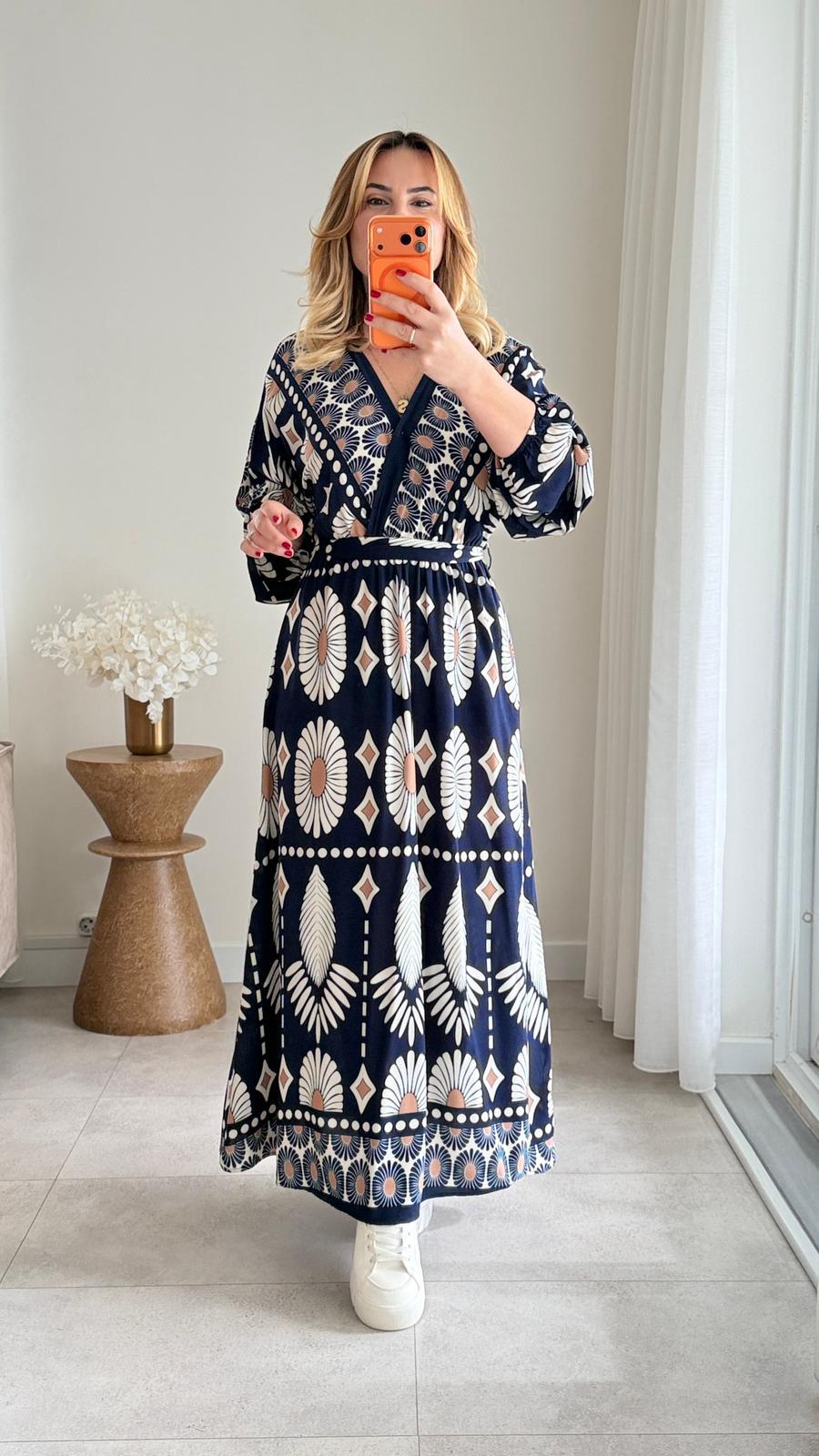 8904 Lacivert Kruvaze Yaka Viskon Elbise (SK-08904)