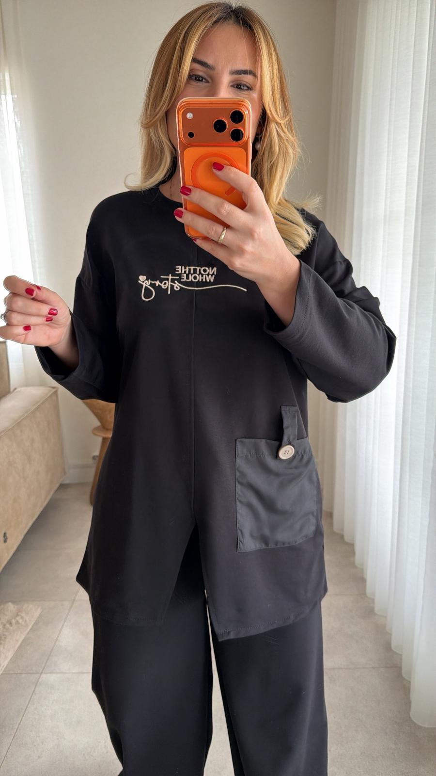 8905 Siyah Paraşüt Cep Detay Eşofman Takımı (SK-08905)