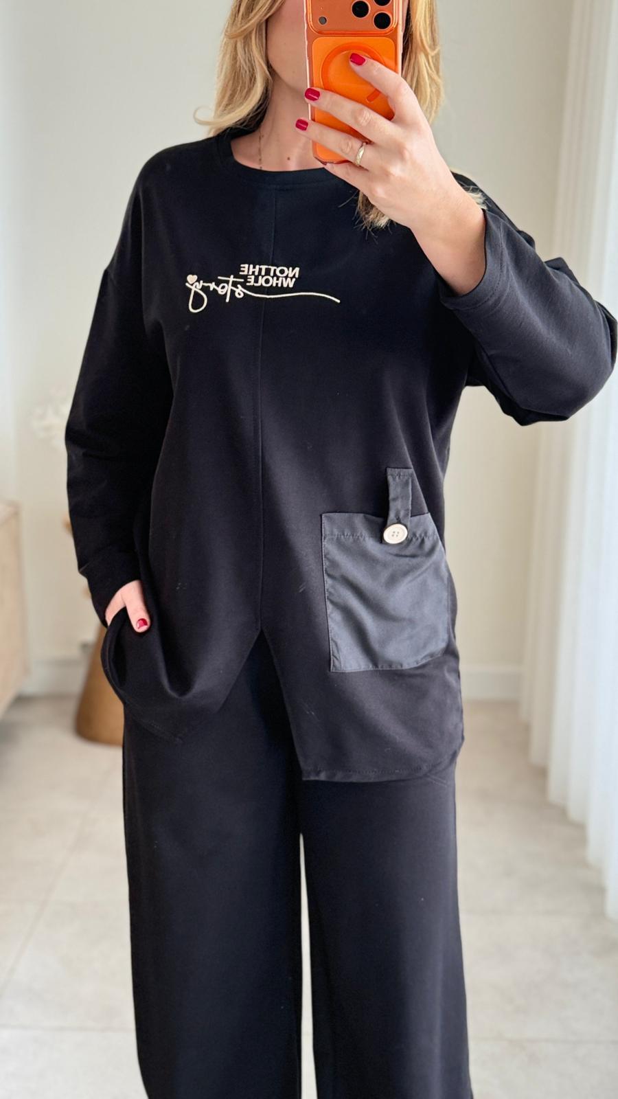 8905 Siyah Paraşüt Cep Detay Eşofman Takımı