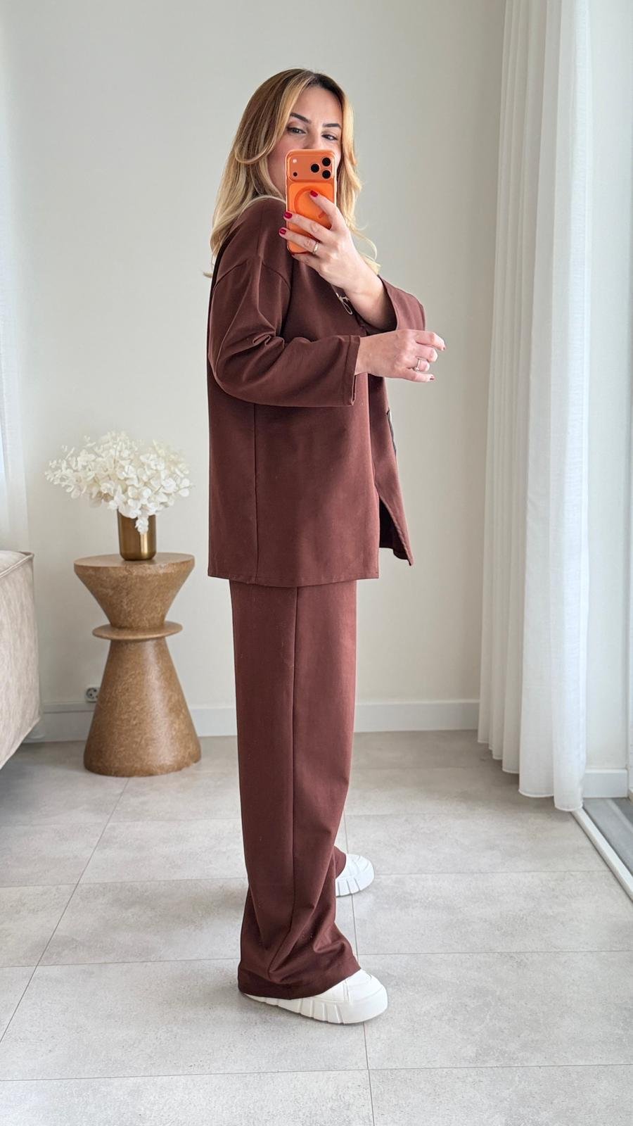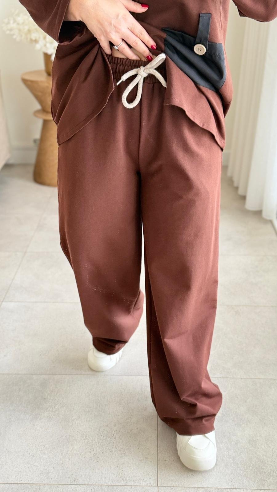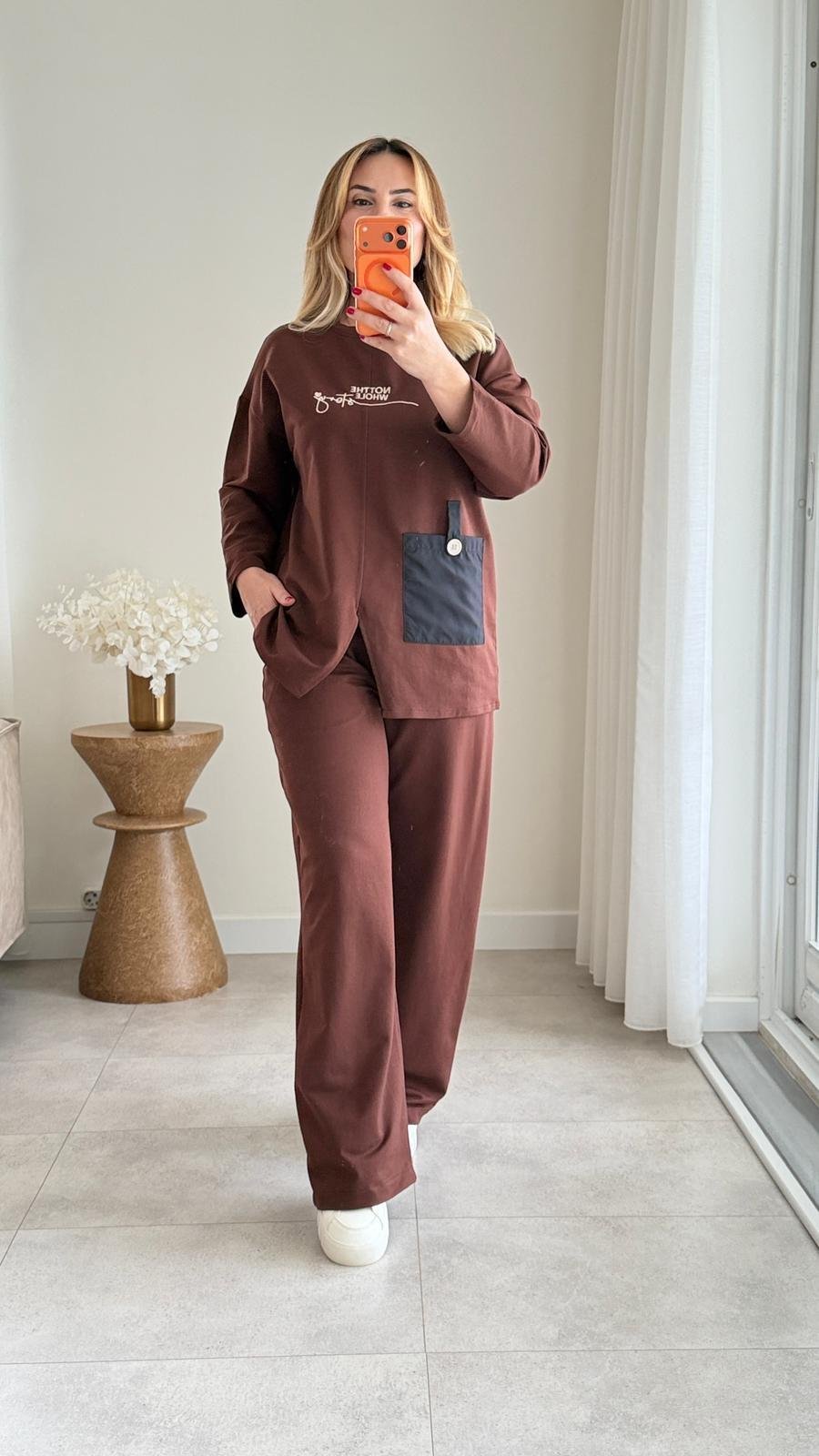 8907 Kahve Paraşüt Cep Detay Eşofman Takımı (SK-08907)