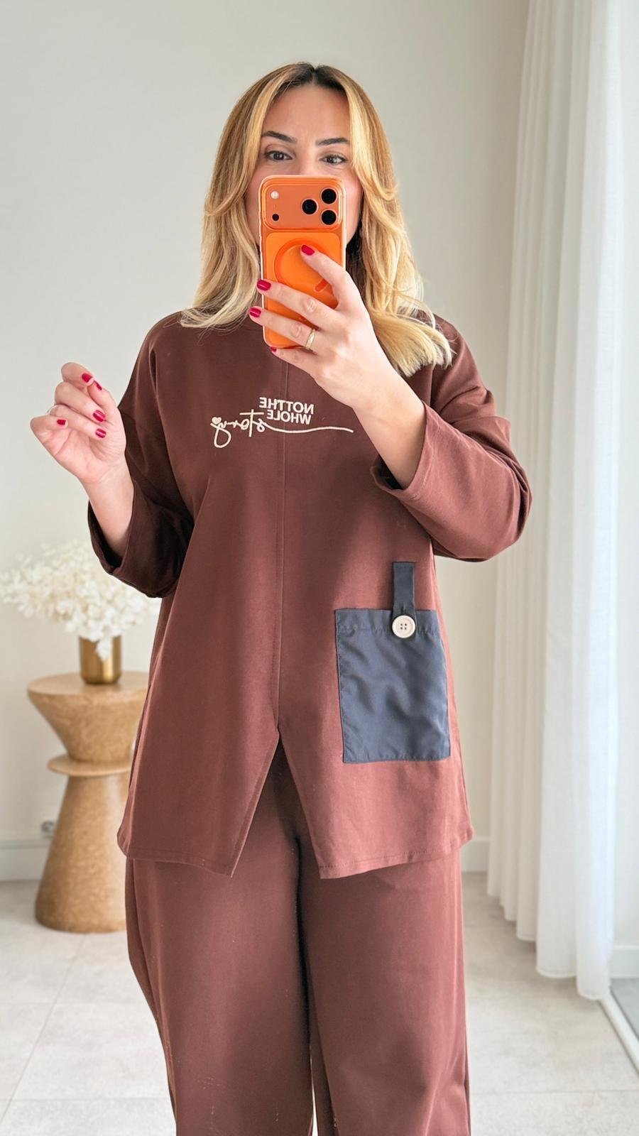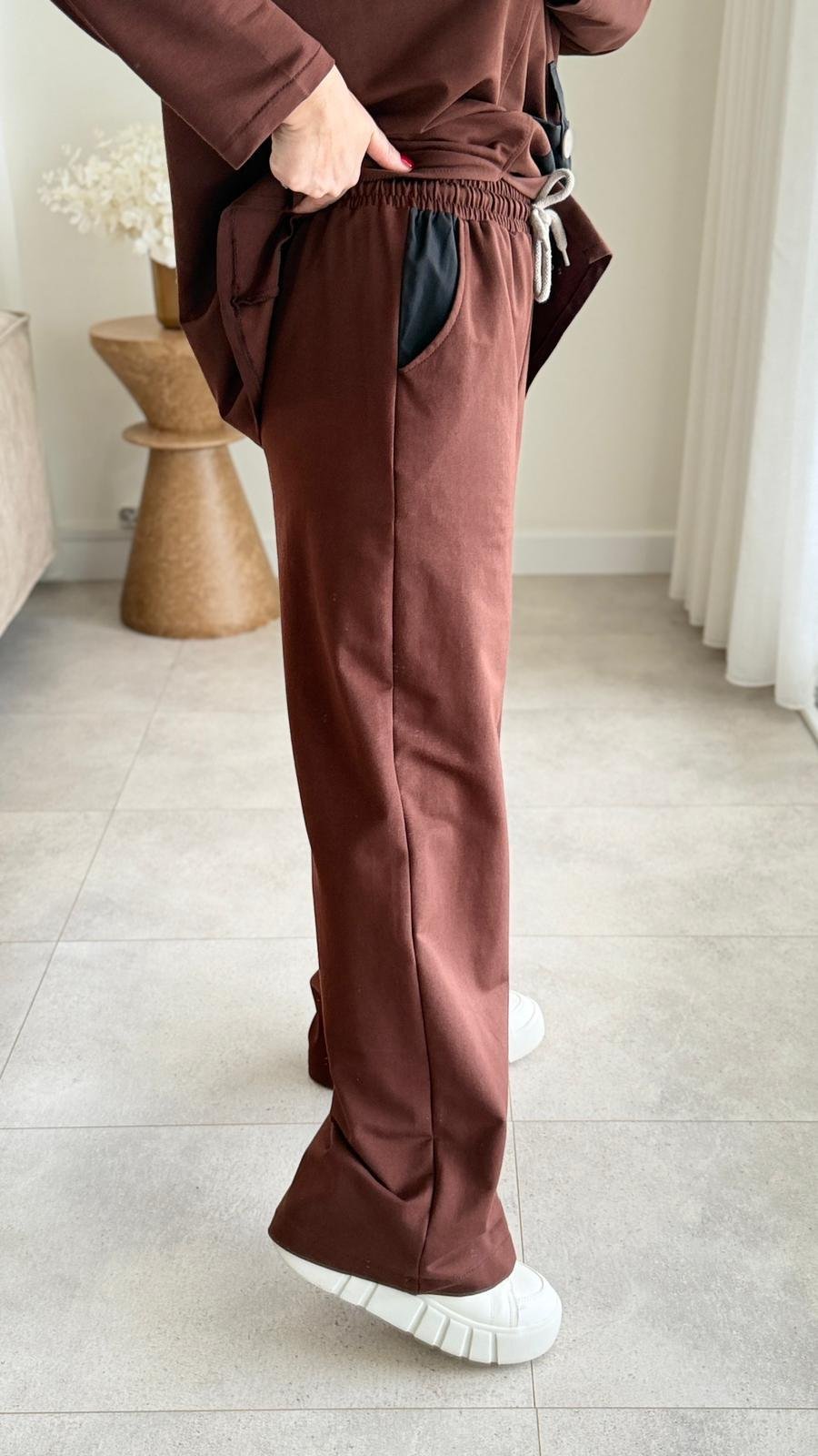8907 Kahve Paraşüt Cep Detay Eşofman Takımı