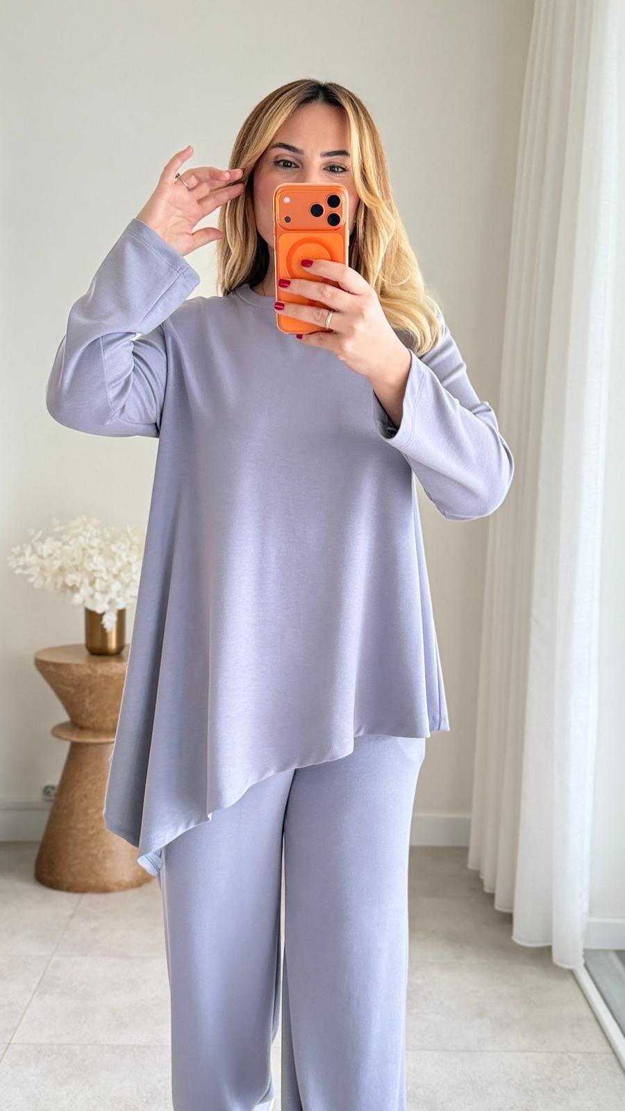 8908 Gri Asimetrik Kesim İkili Takım (SK-08908)