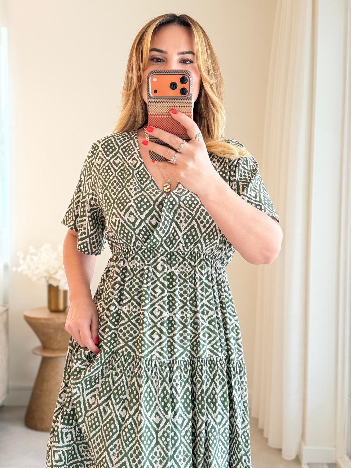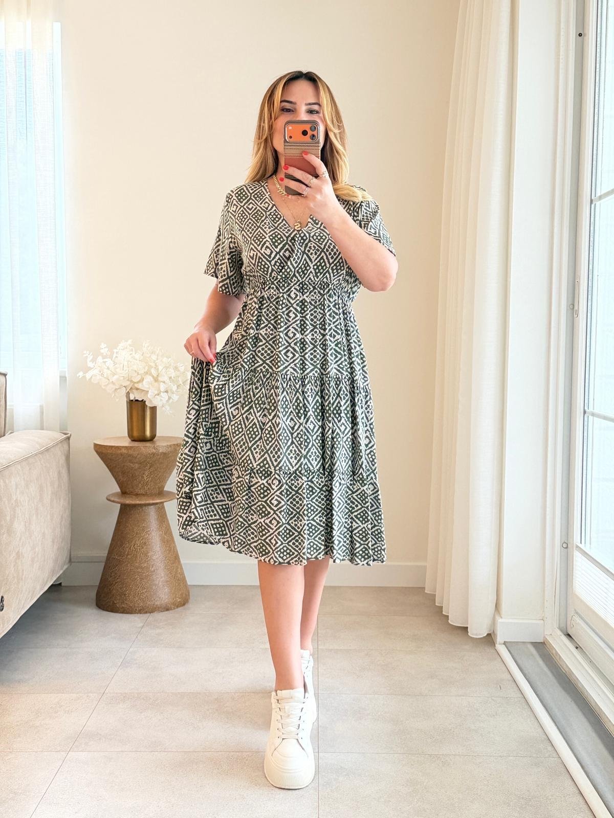 8951 Haki Desenli Kruvaze Yaka Elbise (SK-08951)