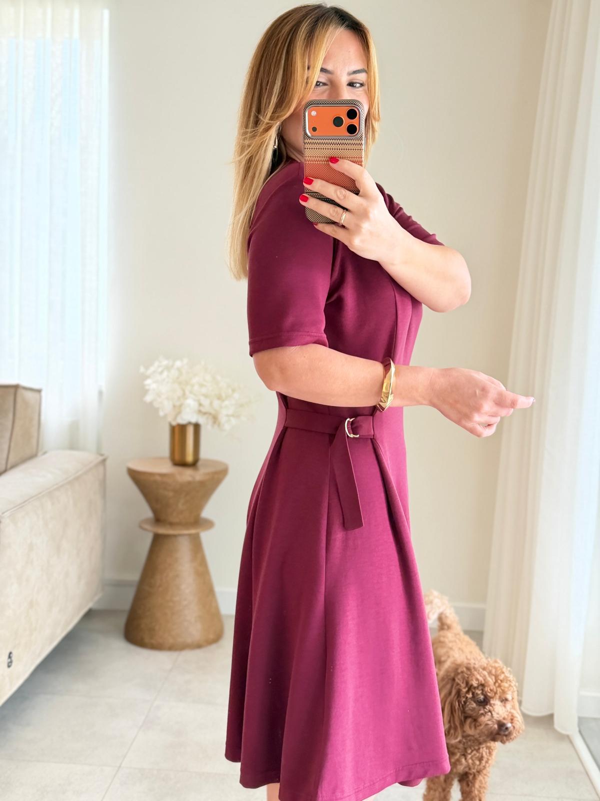8966 Bordo Bisiklet Yaka Modal Elbise