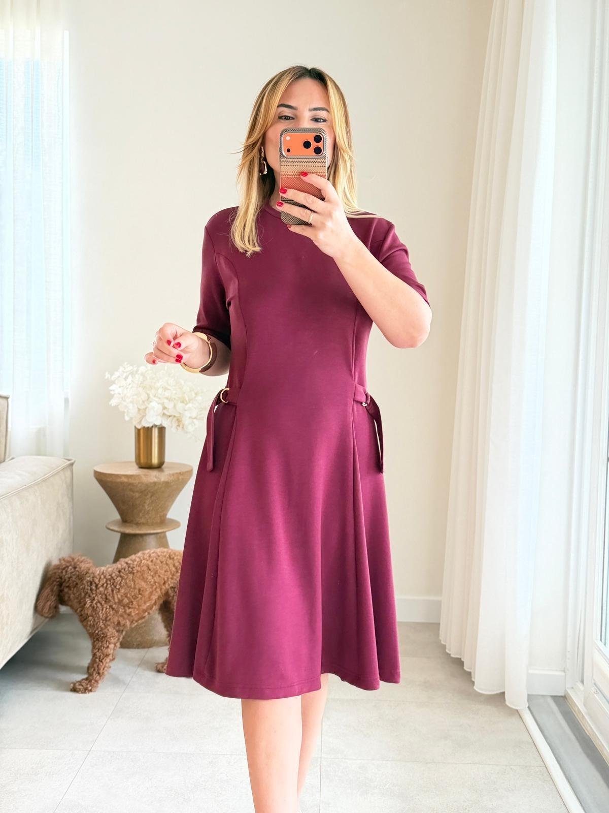 8966 Bordo Bisiklet Yaka Modal Elbise (SK-08966)