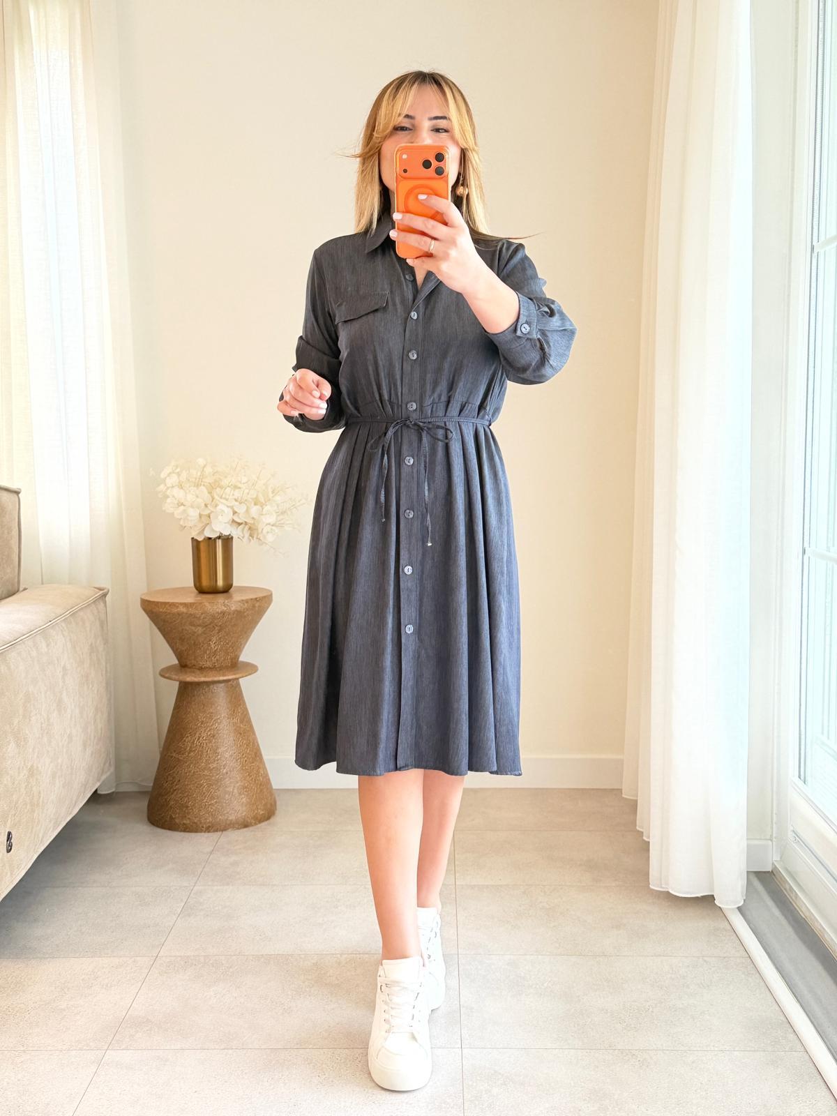 8978 Antrasit Tensel Gömlek Elbise (SK-08978)