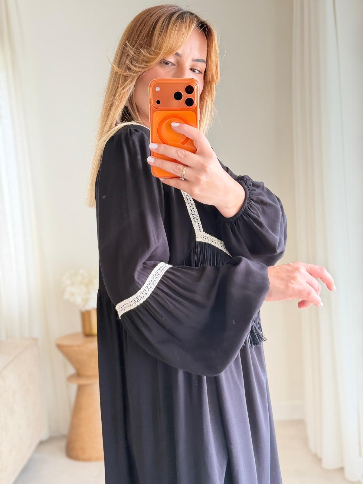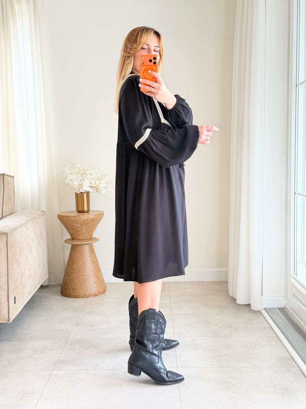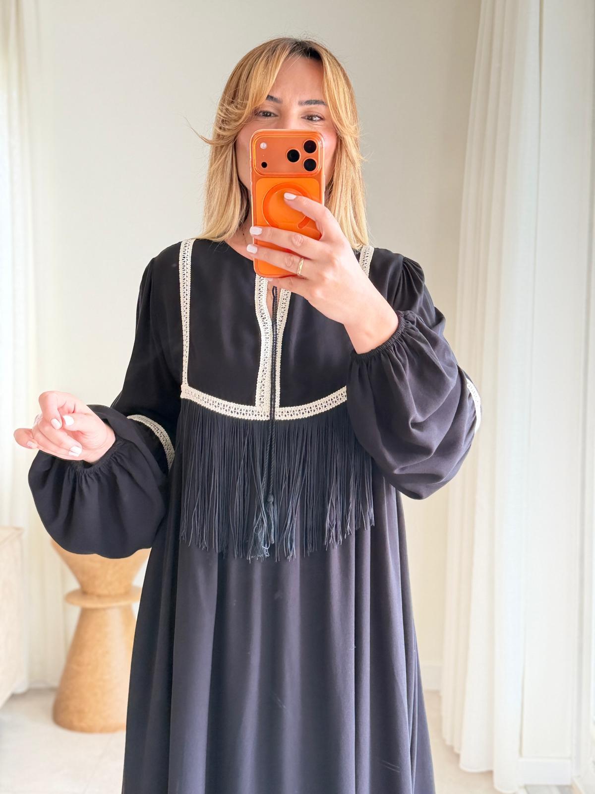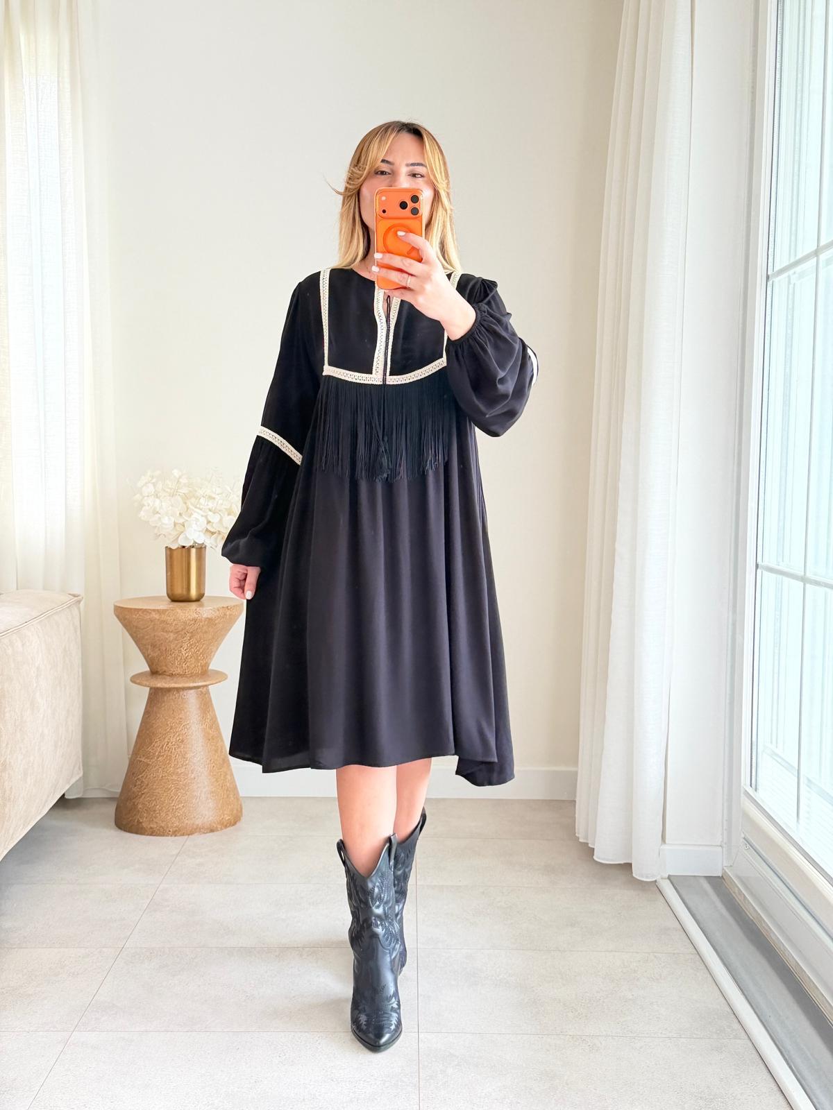 8980 Siyah Püskül Detay Elbise (SK-08980)