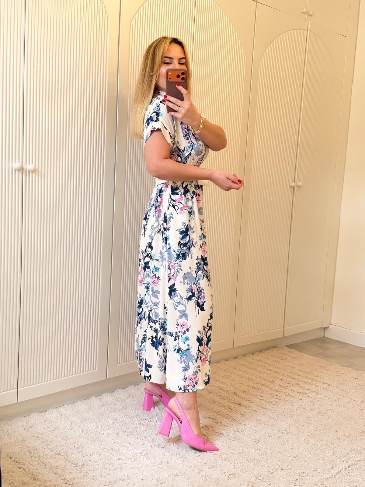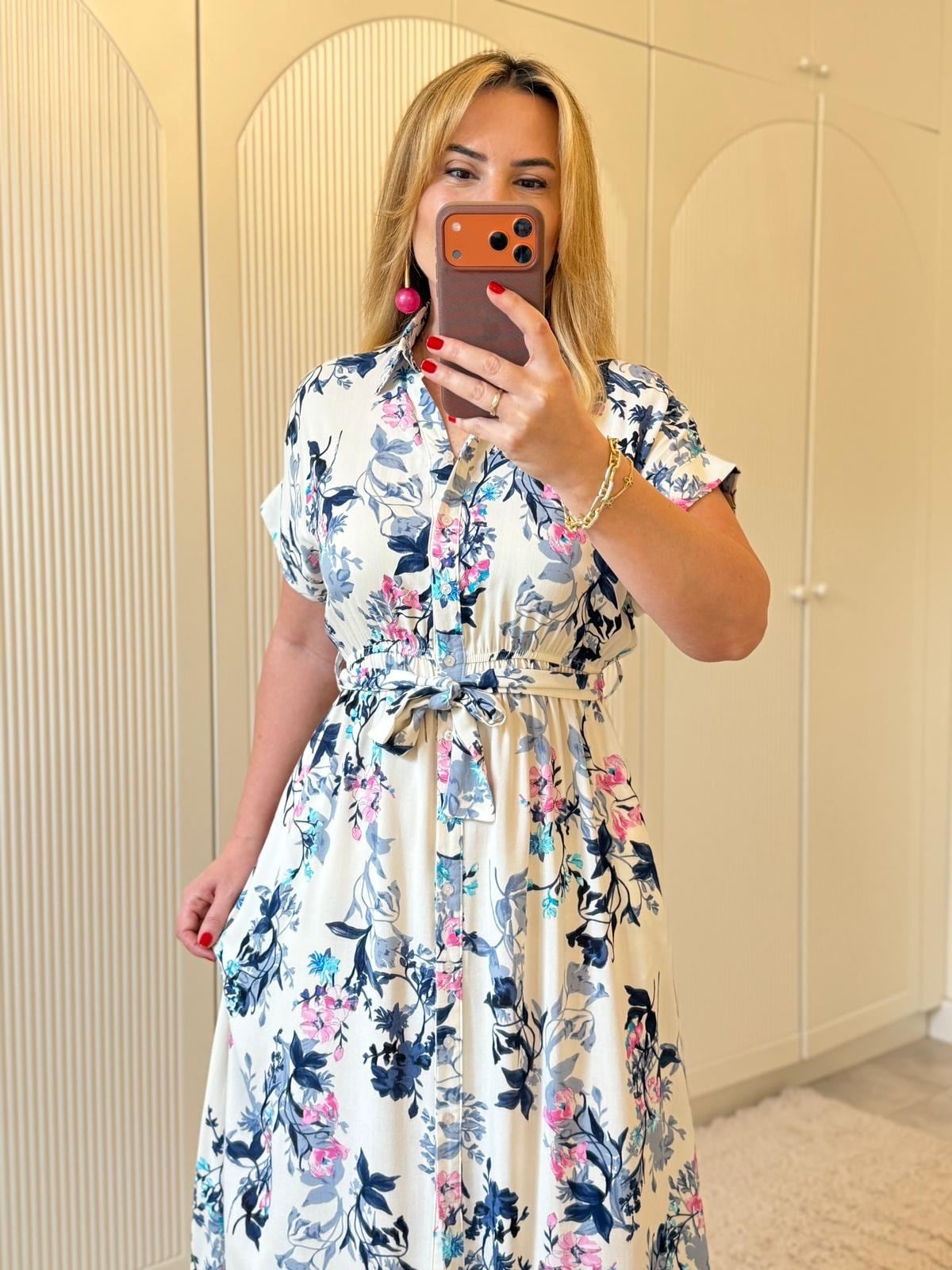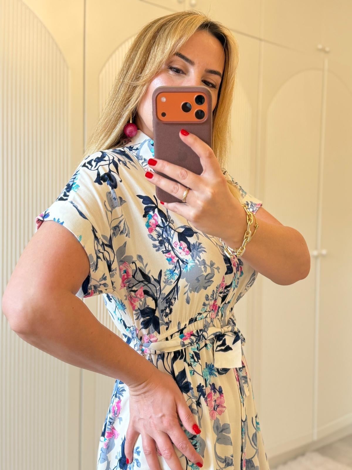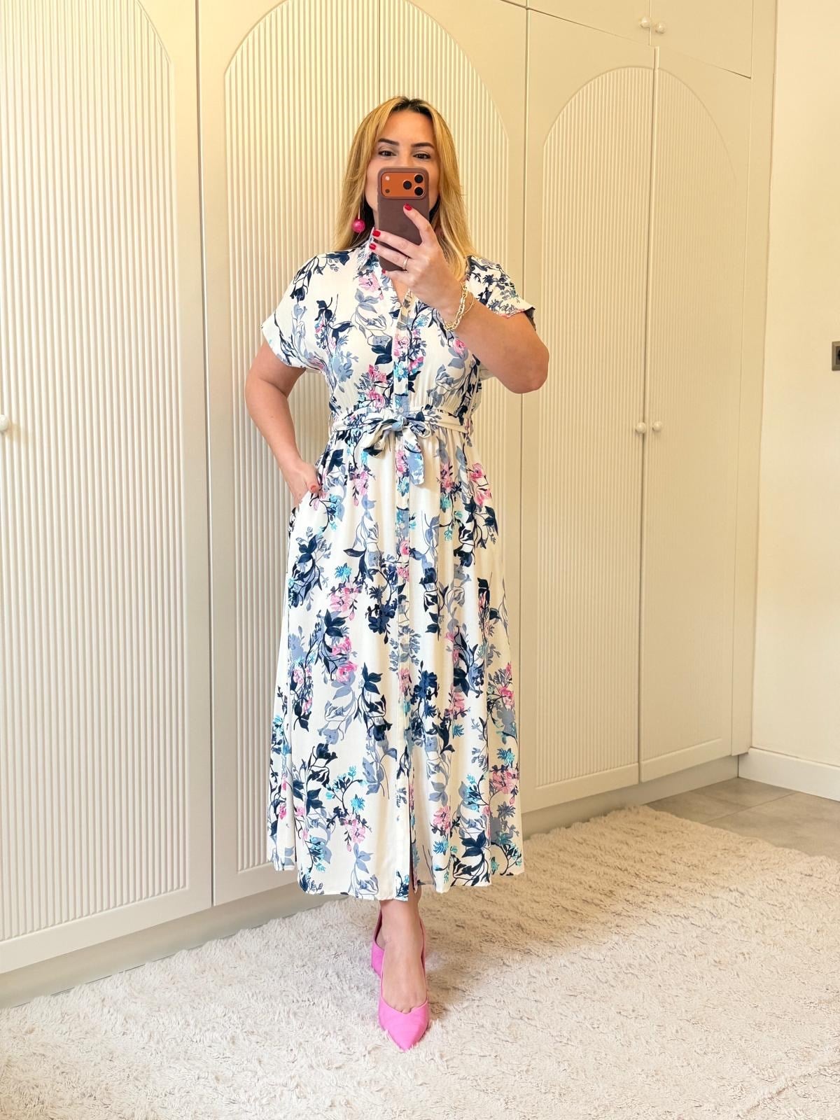 9276 Kısa Kollu Lacivert Desen Elbise (SK-09276)
