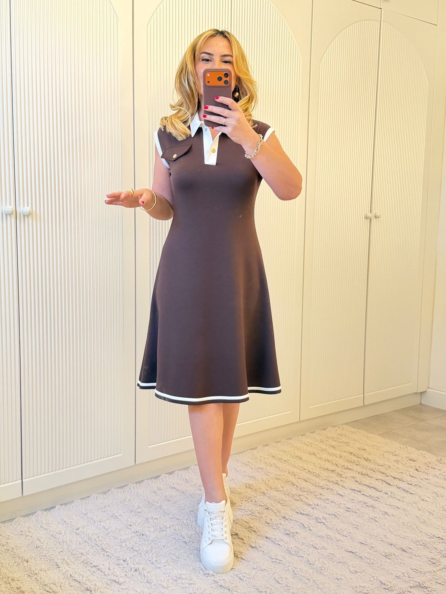 9287 Kolsuz Şerit Detay Kahve Elbise (SK-09287)