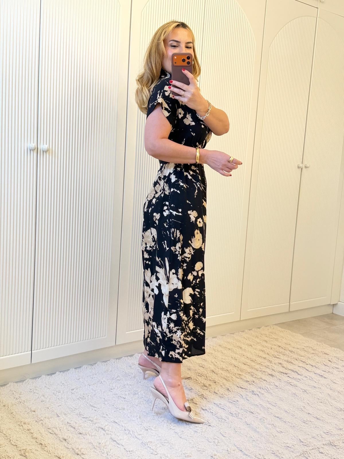 9290 Siyah Gömlek Yaka Kuşaklı Elbise