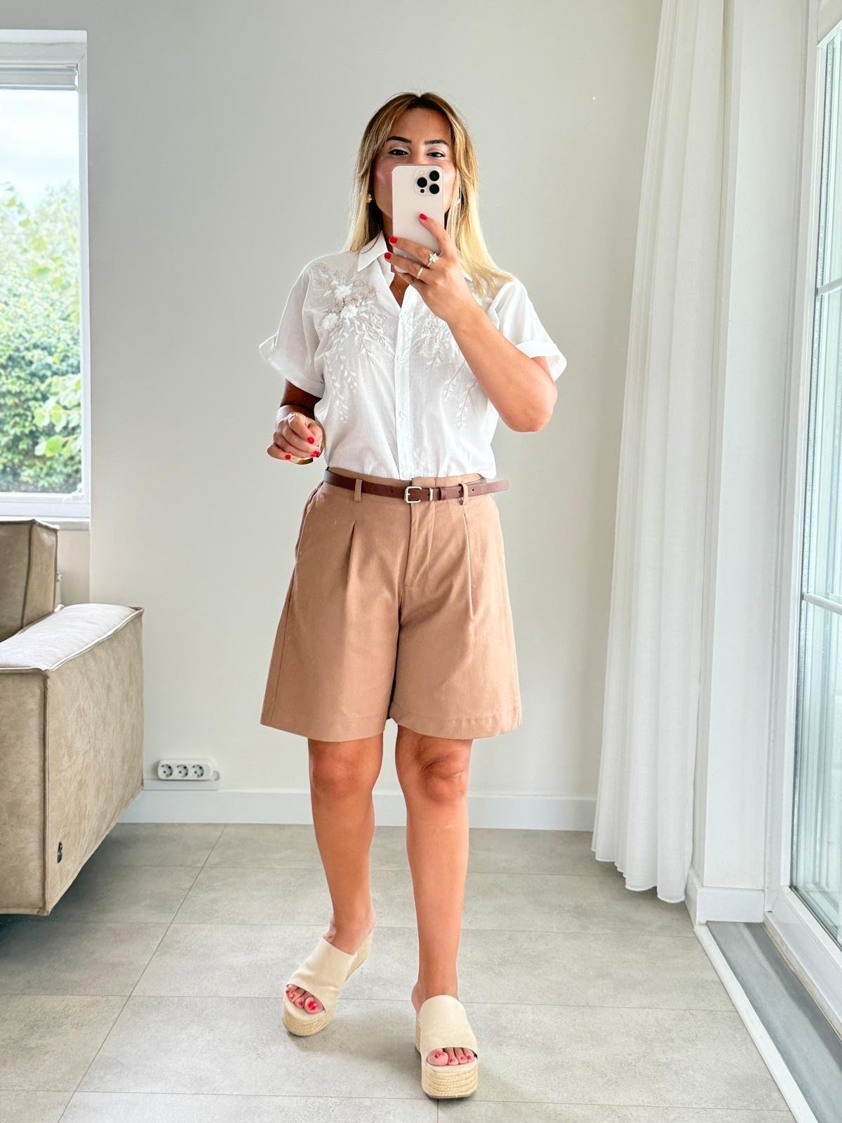 8356 Mavi Bel Lastikli Şort 8355 Ekru Bel Lastikli Şort