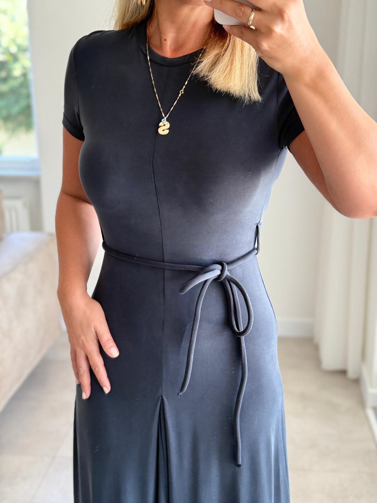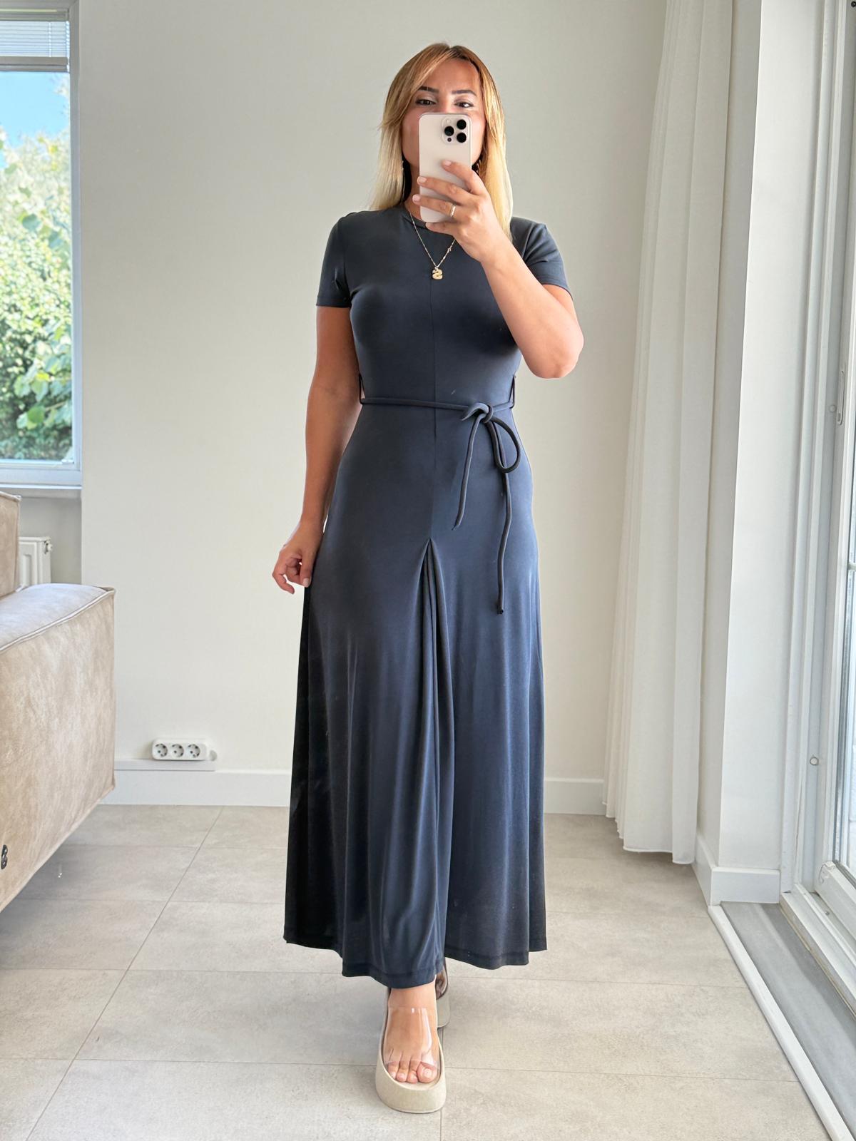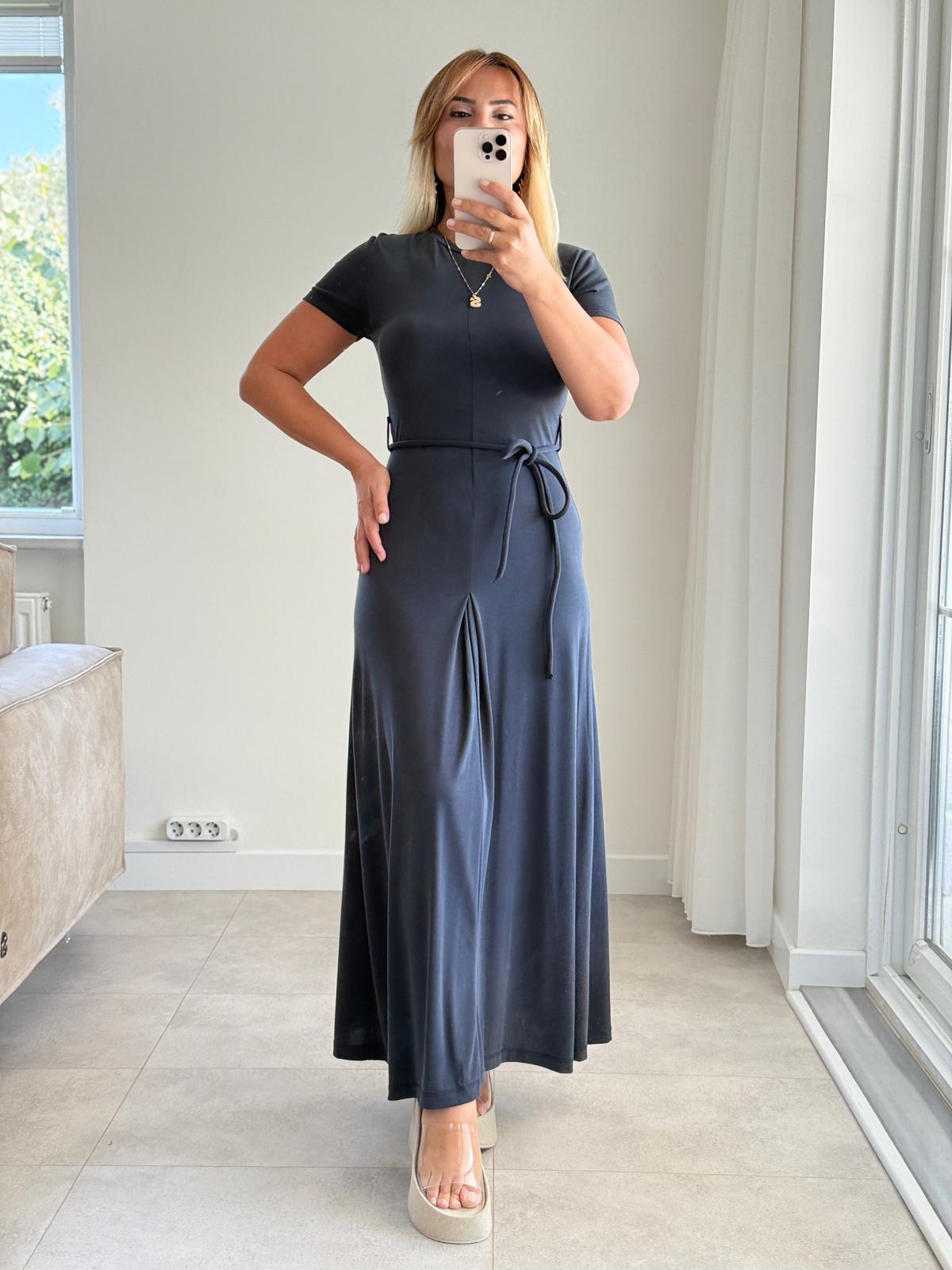 7830 Antrasit Bel İpli Modal Elbise