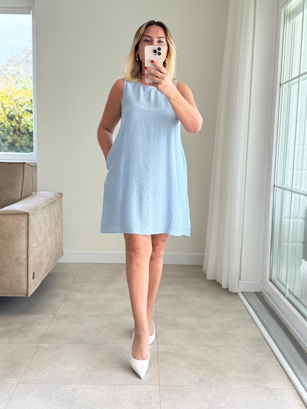 7780 Bebe Mavi Kolsuz Mini Elbise (SK-07780)