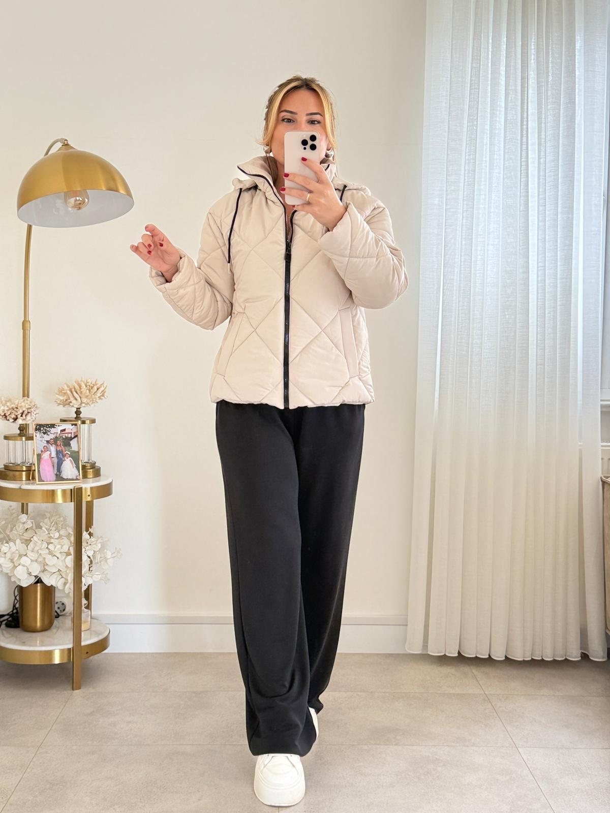 BEJ CEP DETAY KAPÜŞONLU ŞİŞME MONT (SK-08679)
