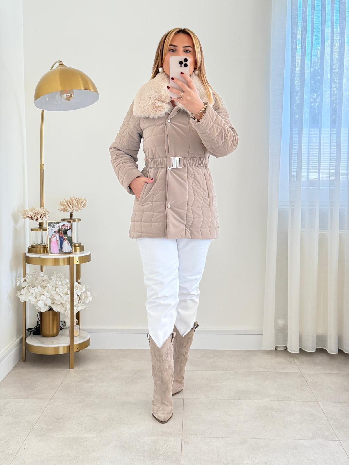 CAMEL KÜRK DETAY KEMERLİ MONT