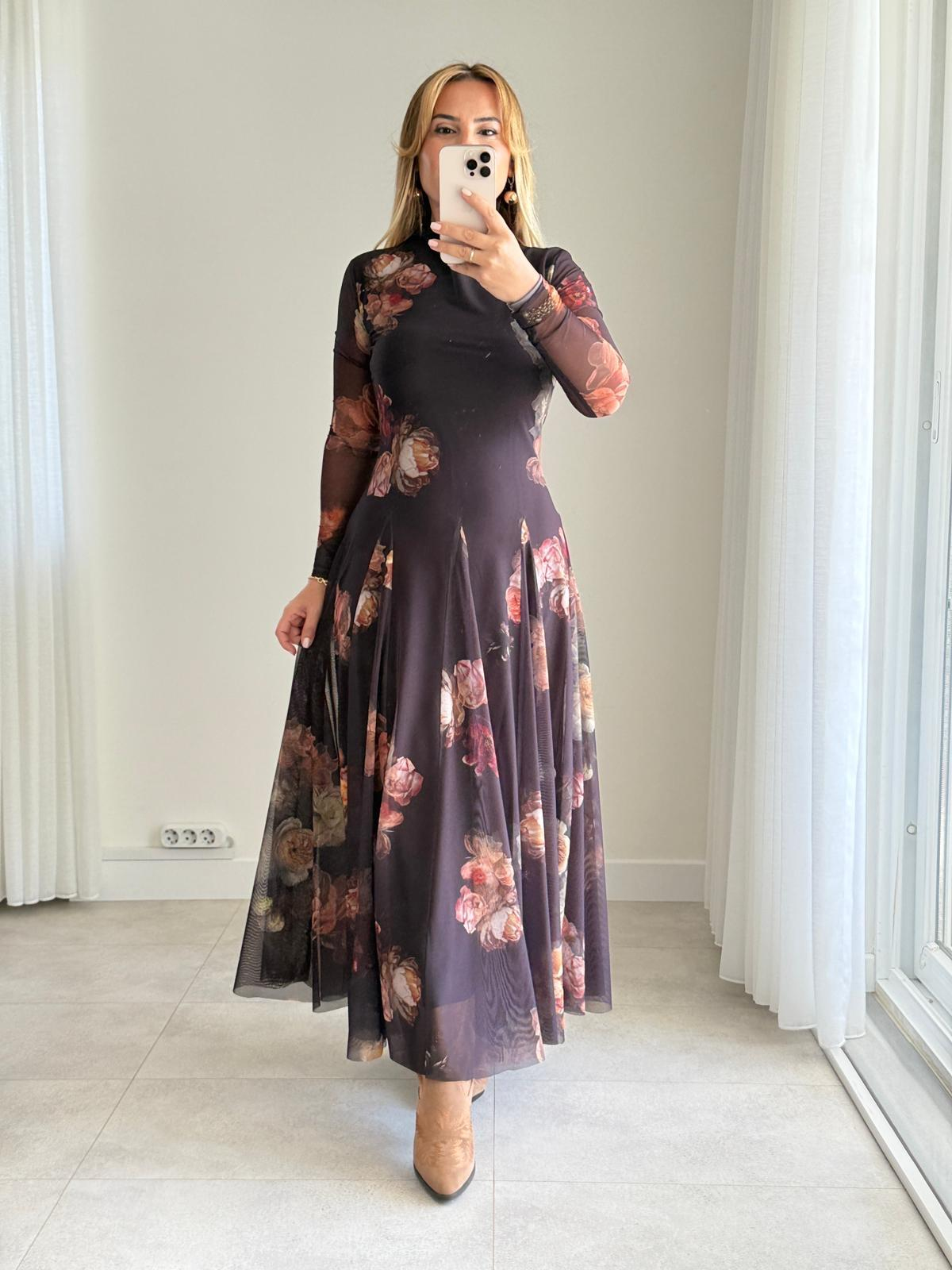 ÇİÇEK DESENLİ MAXİ ELBİSE