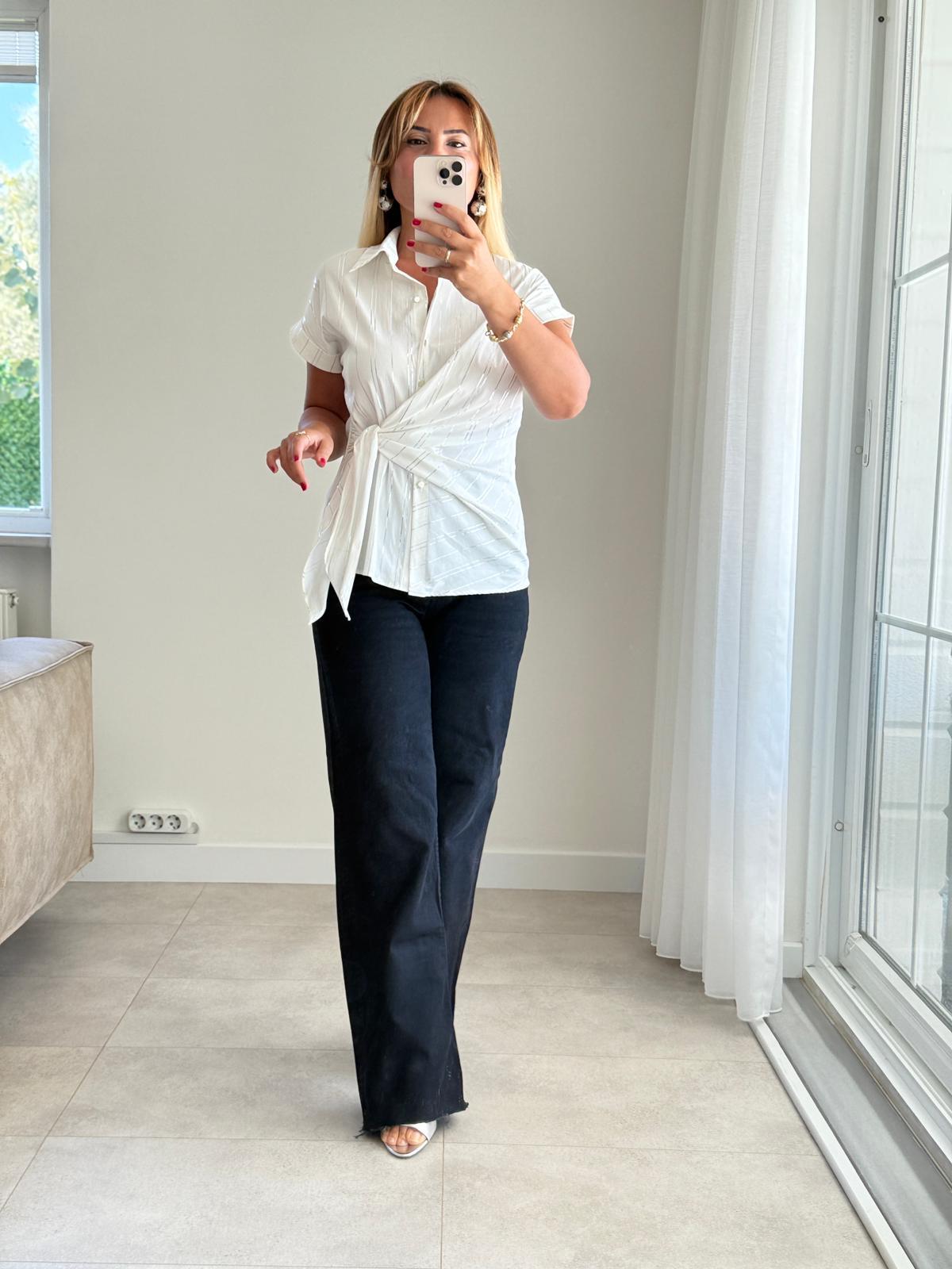 8449 Ekru Bağlama Detay Poplin Gömlek
