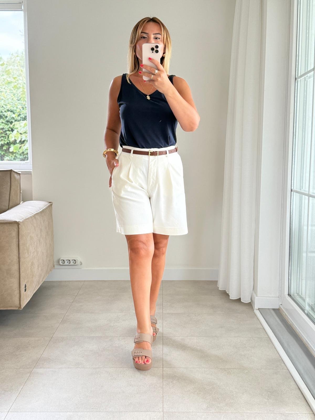 8355 Ekru Bel Lastikli Şort (SK-08355)