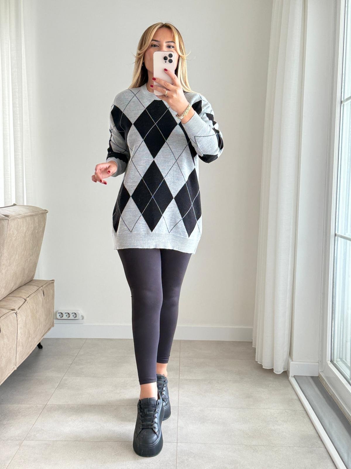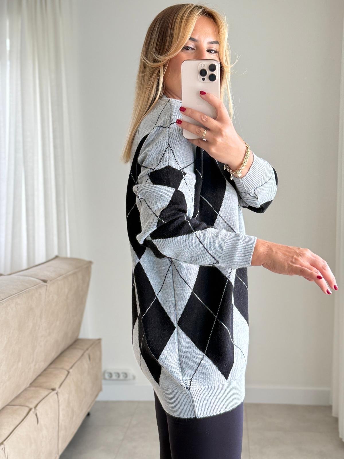 Siyah ve gri tonlarının mükemmel uyumuyla tasarlanan Gri Siyah Baklava Triko, kış sezonunun vazgeçilmez parçası olmaya aday. Yumuşak dokusu ve esnek yapısıyla gün boyu konfor sunarken, baklava desenli örgü detayı modern bir tarz kazandırıyor.