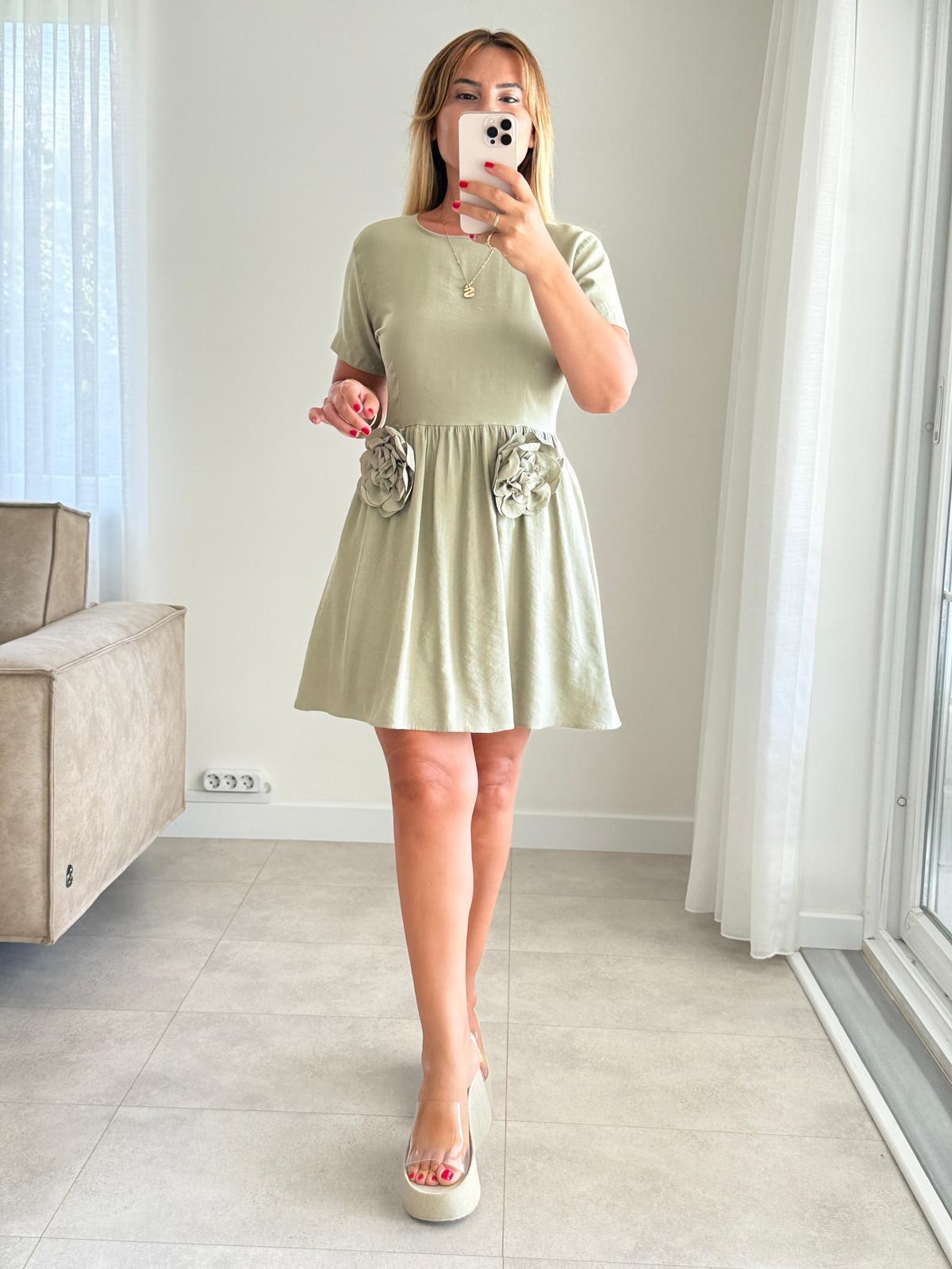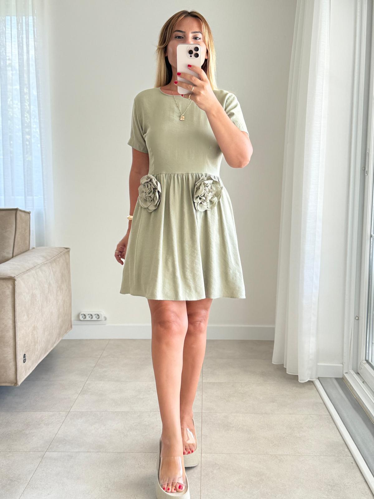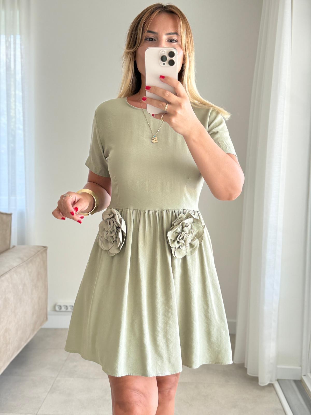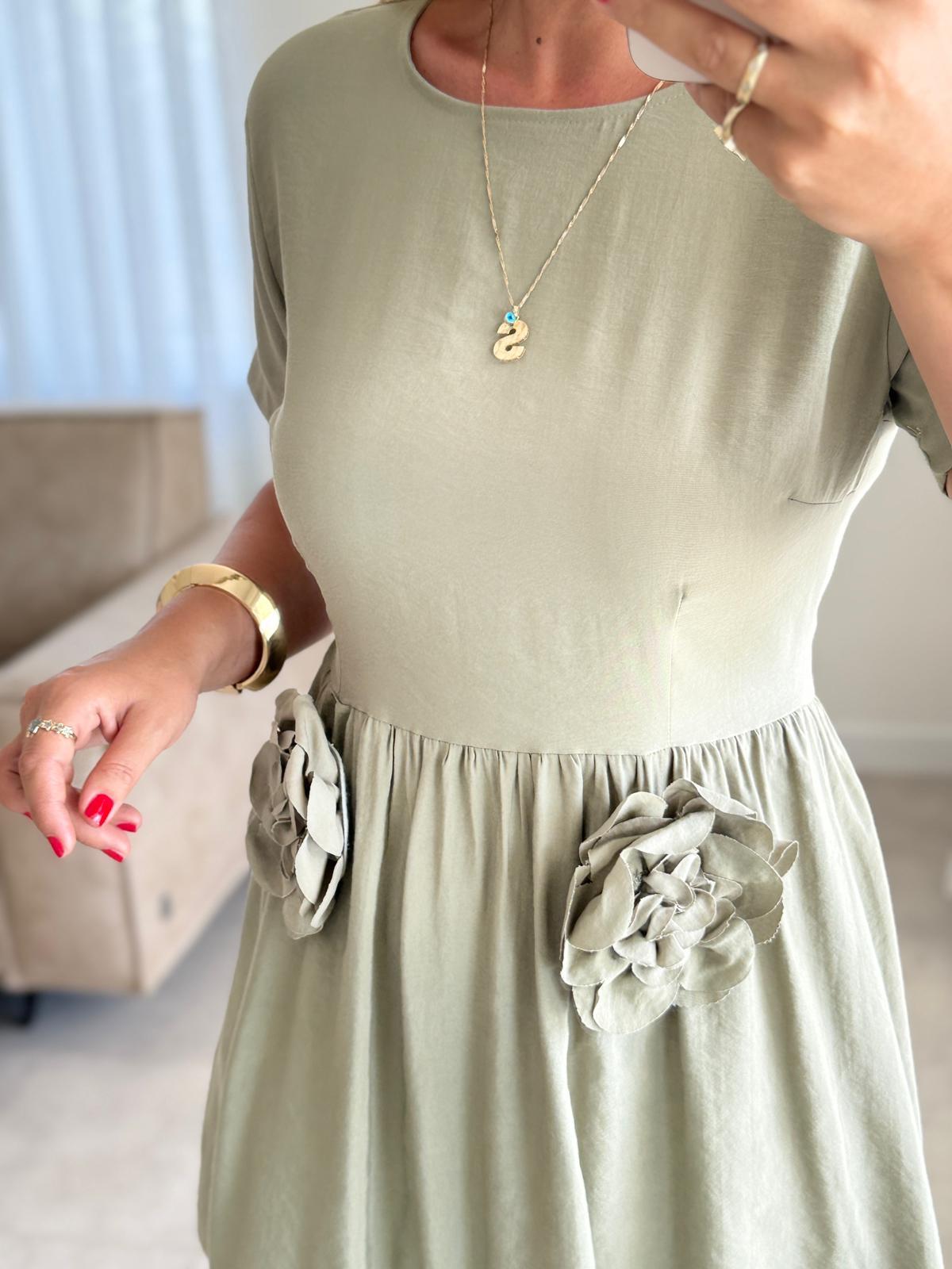 6432 Haki Gül Detay Elbise (SK-06432)