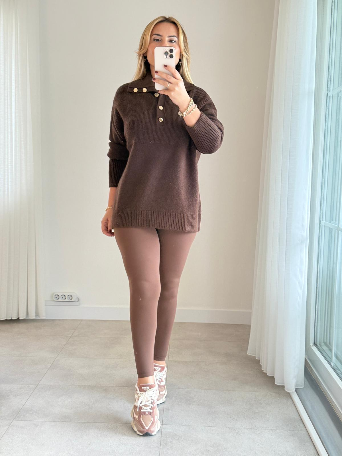 KAHVE DÜĞME DETAYLI TRİKO KAZAK