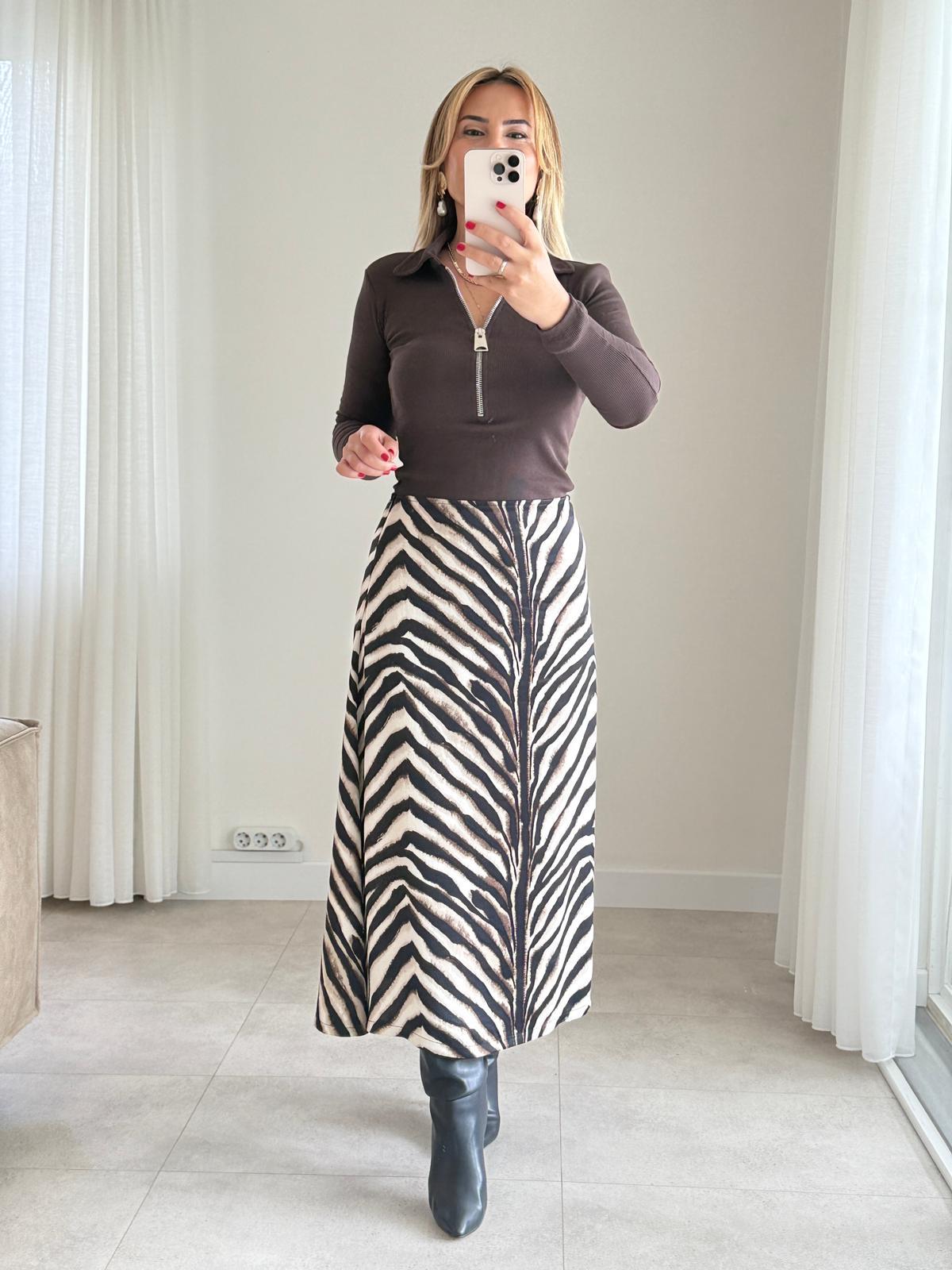 KAHVE FERMUAR DETAY BLUZ (SK-08630)