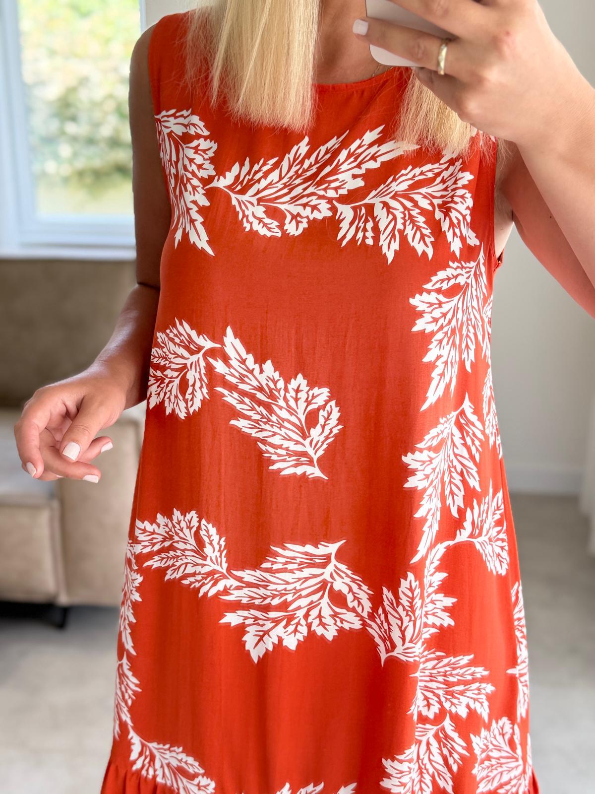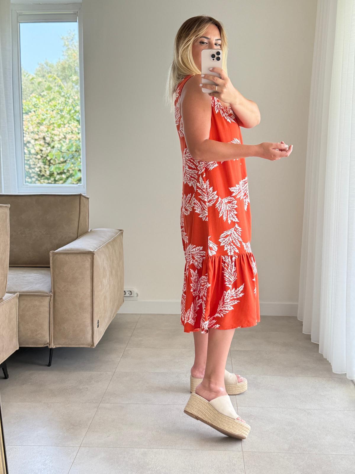 8060 Kiremit Beyaz Kolsuz Elbise (SK-08060)