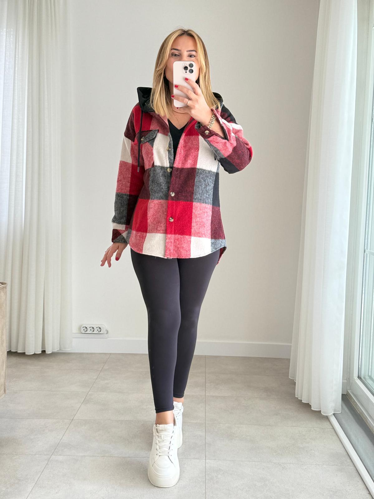 KIRMIZI KAPİŞONLU ODUNCU GÖMLEK (SK-08639)