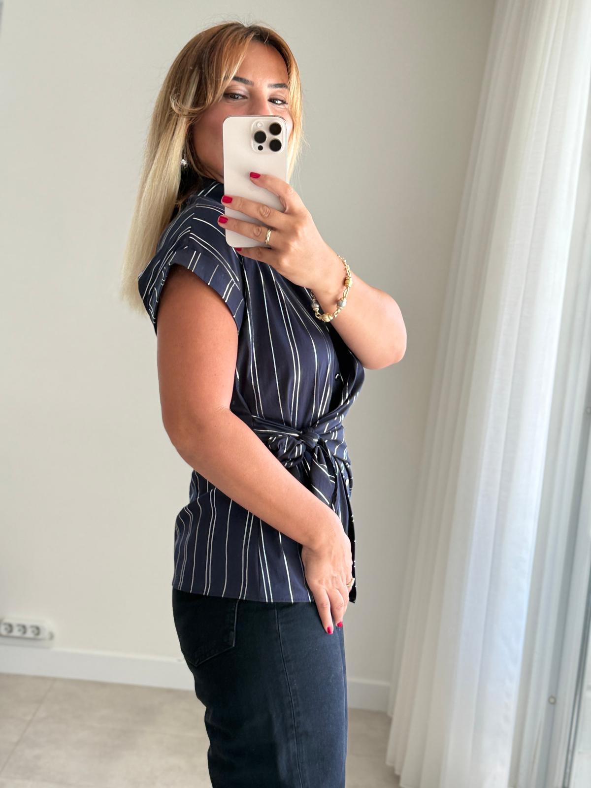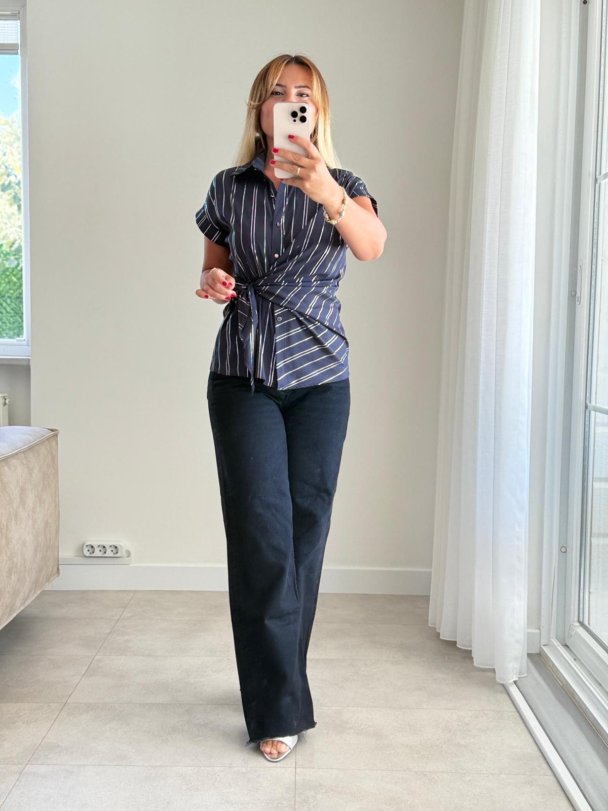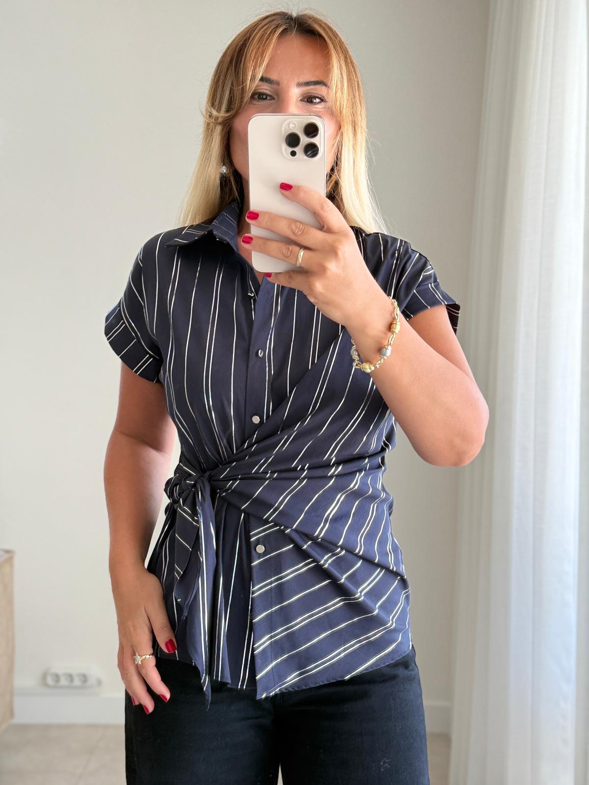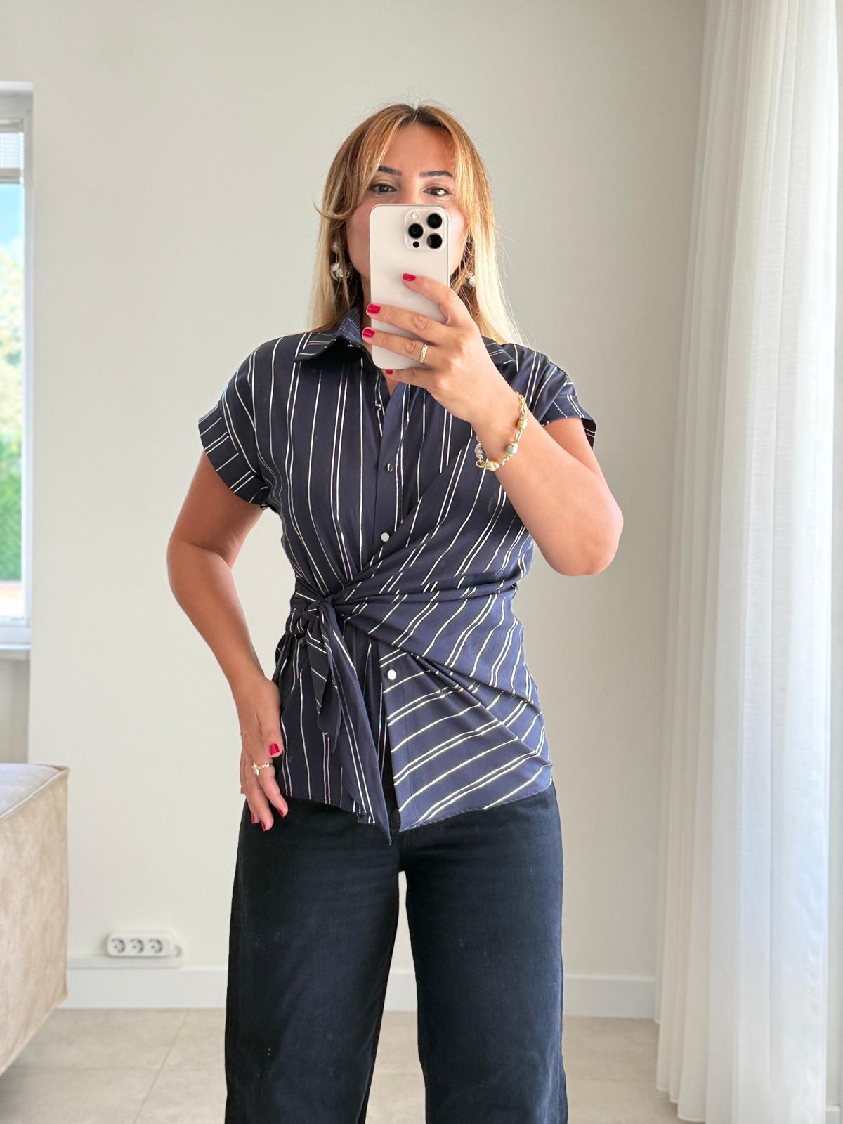 8450 Lacivert Bağlama Detay Poplin Gömlek (SK-08450)