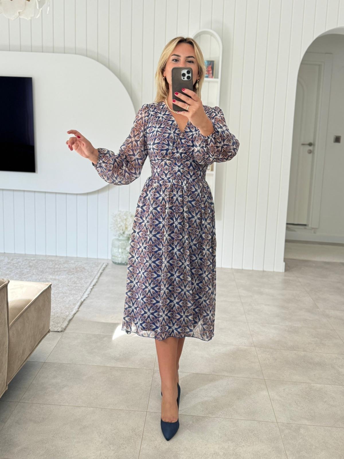 6762 Lacivert Bel Drape Elbise (SK-06762)