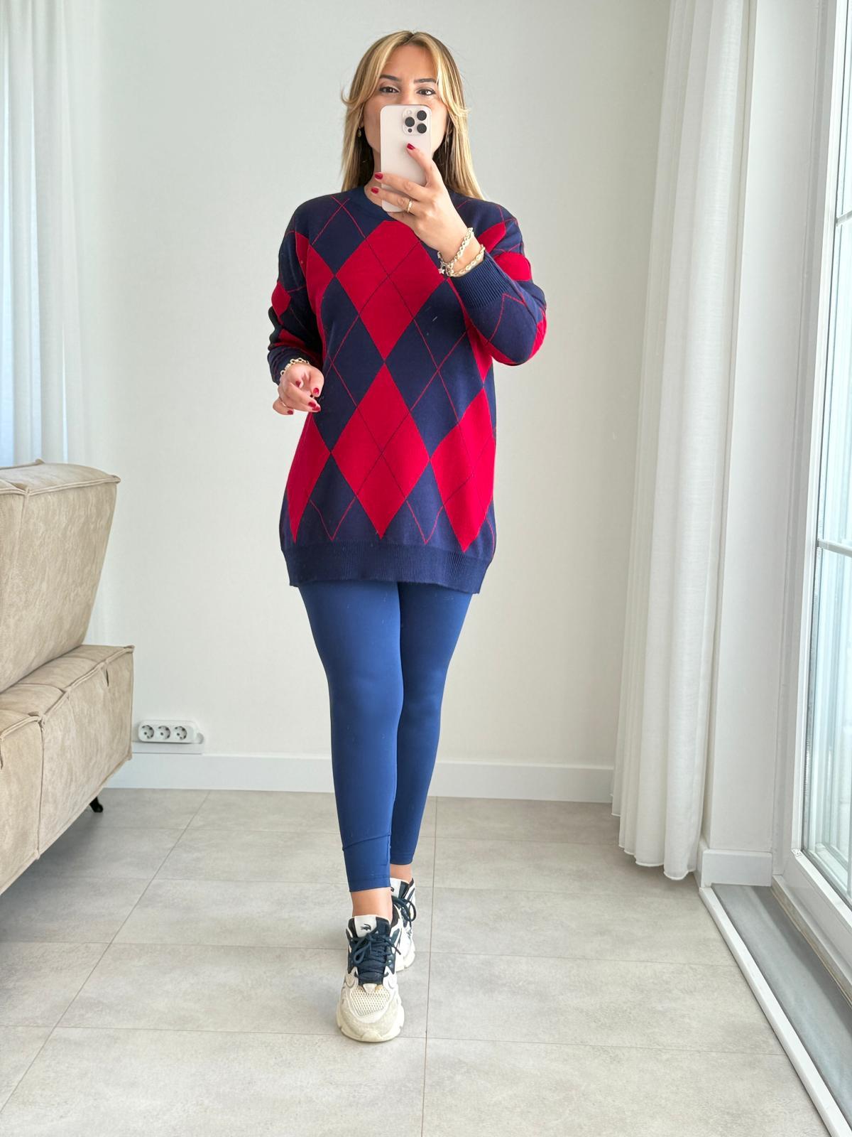 LACİVERT KIRMIZI BAKLAVA TRİKO