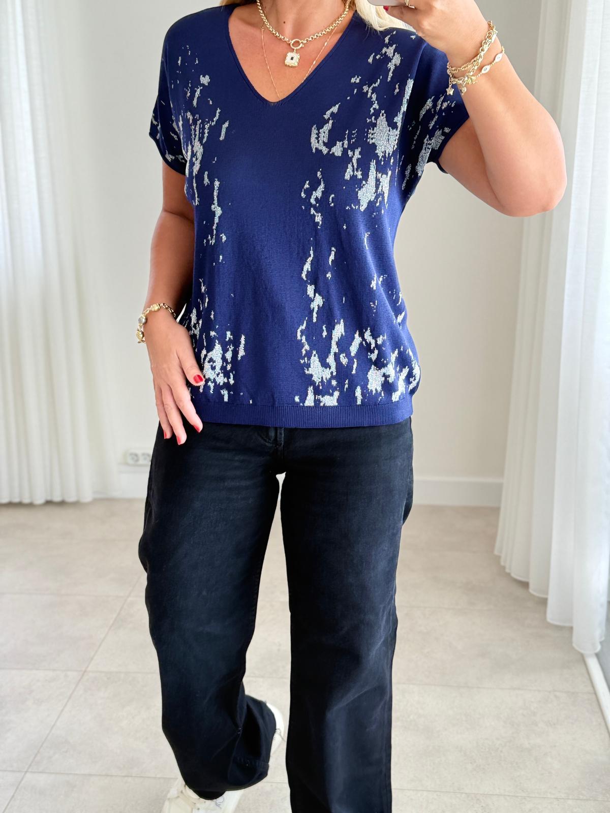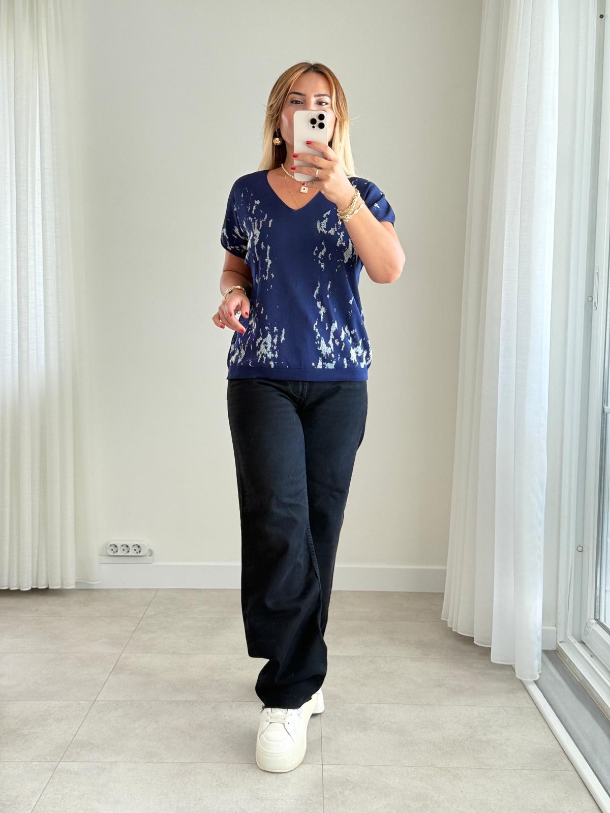 8481 Lacivert V Yaka Desenli Triko (SK-08481)