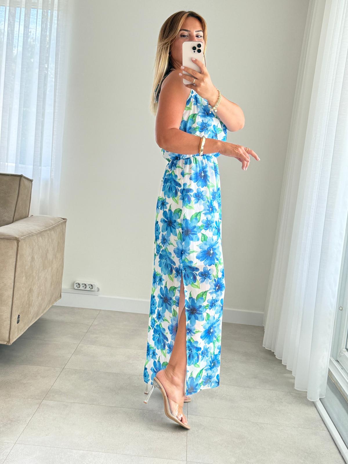 8425 Mavi Astarlı Şifon Elbise (SK-08425)