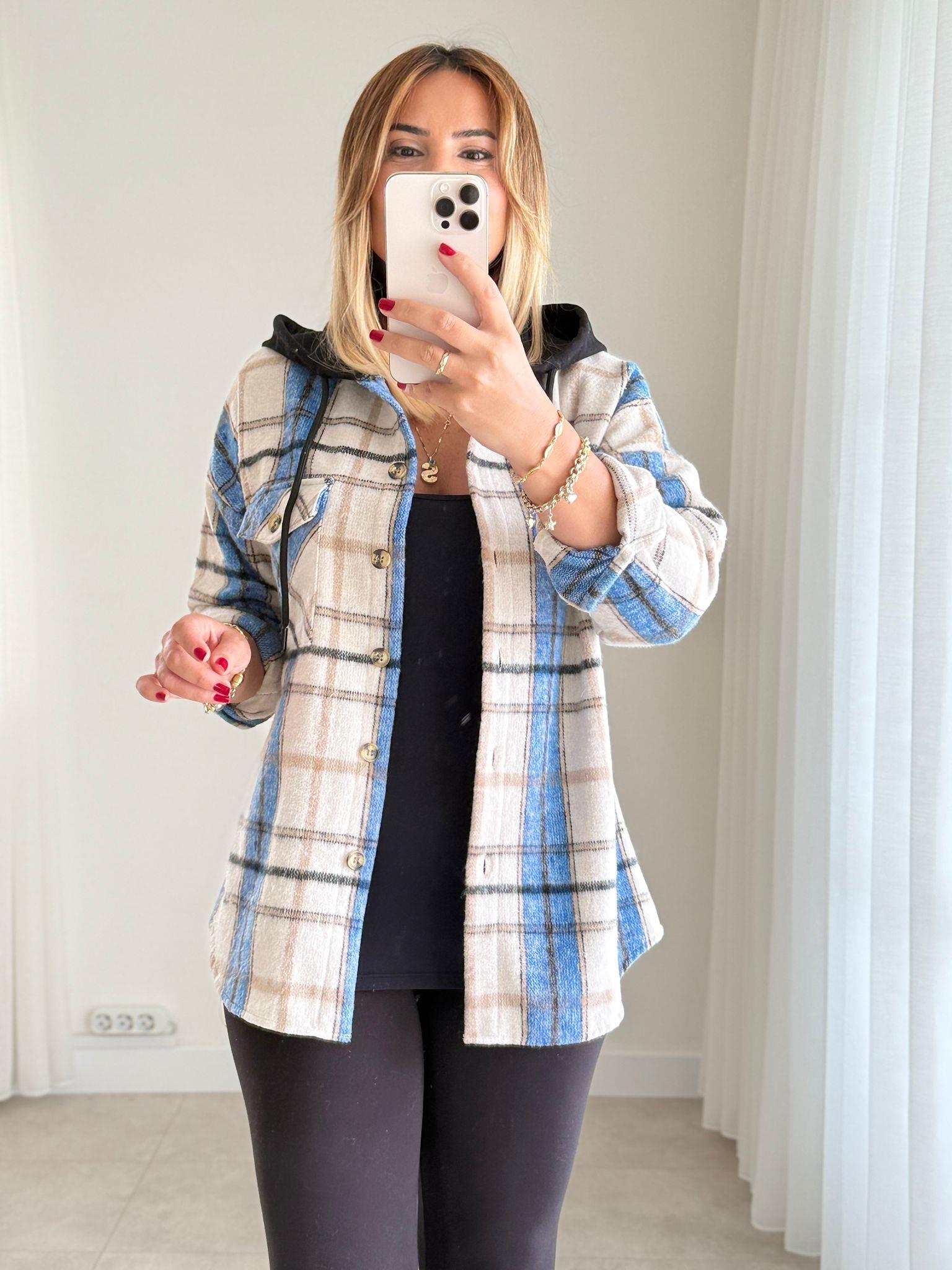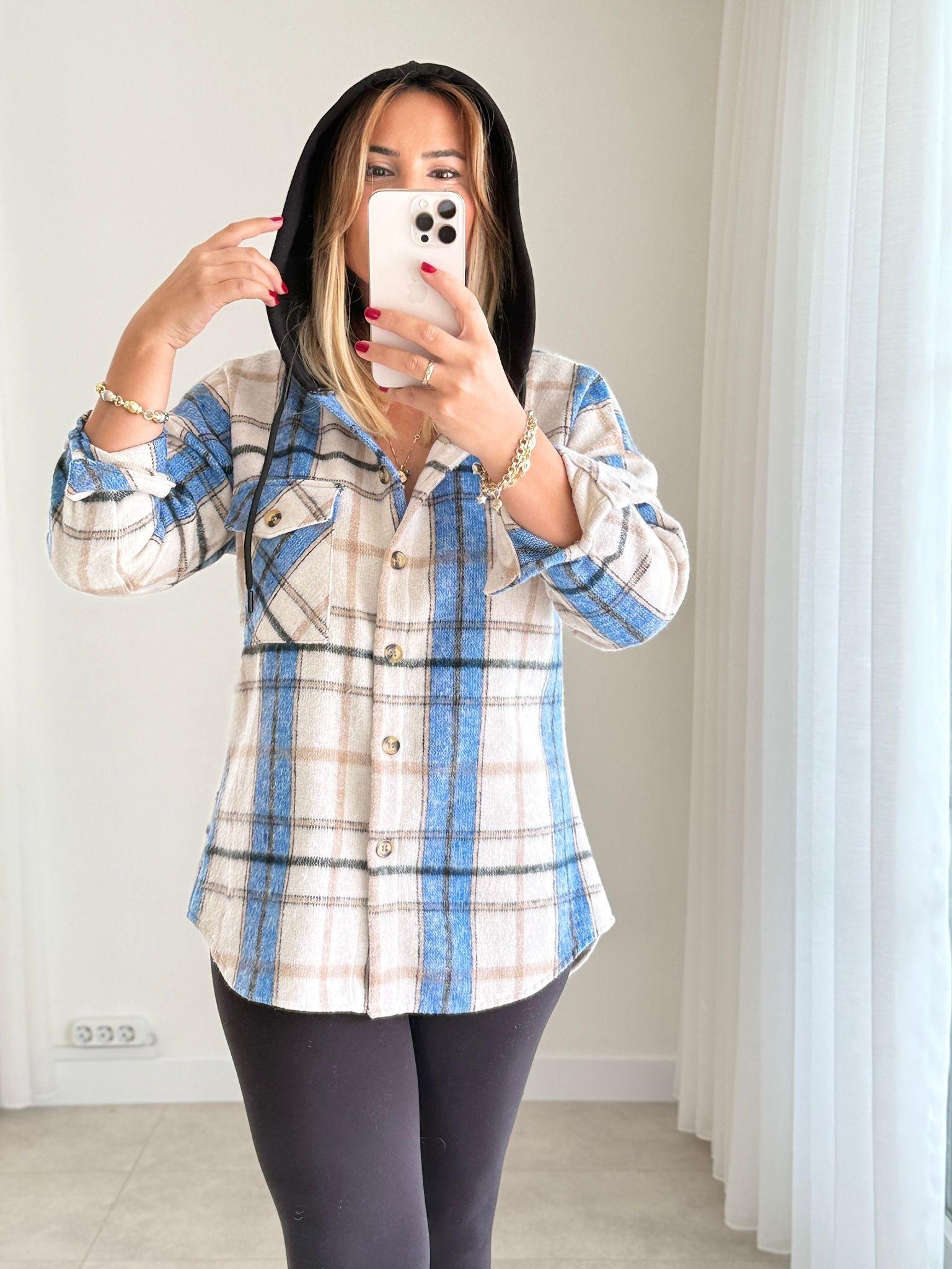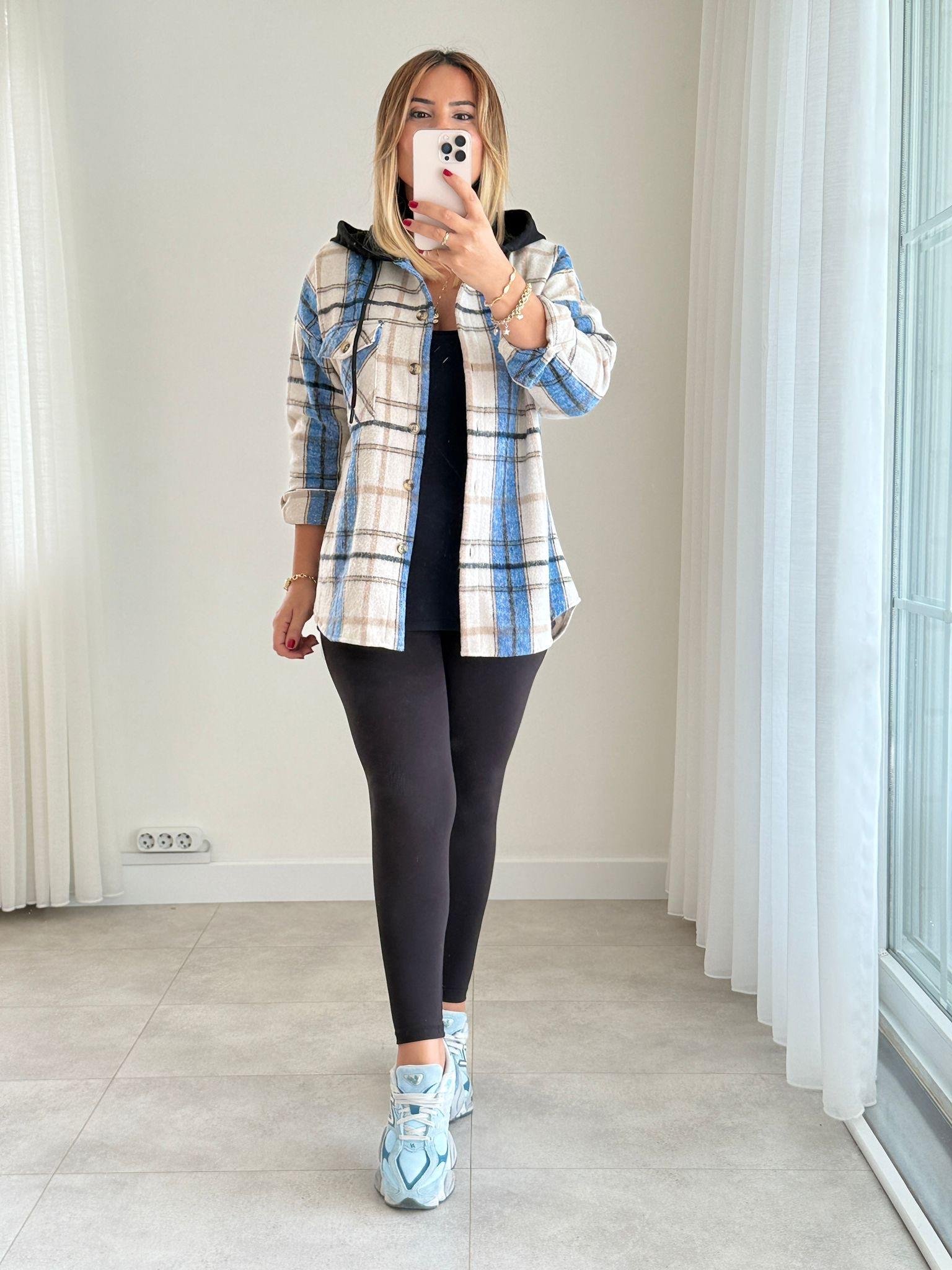 8527 Mavi Kapişonlu Oduncu Gömlek (SK-08527)