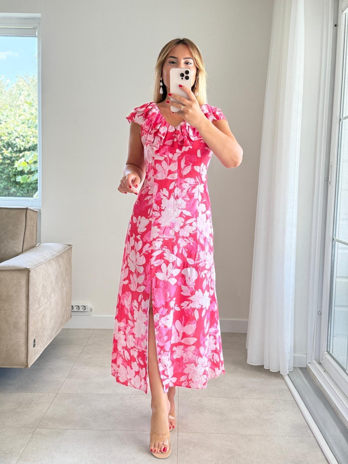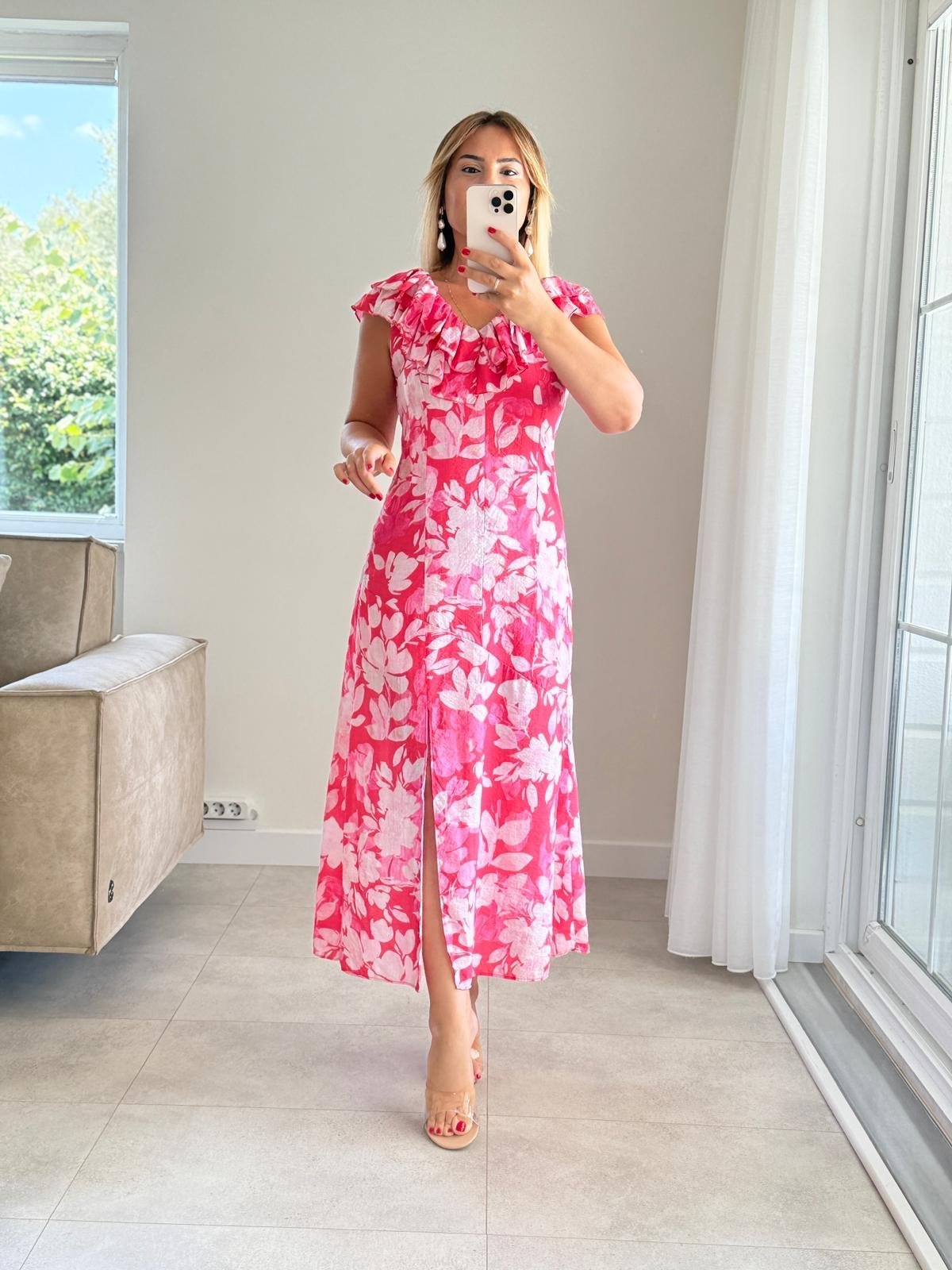 8248 Pembe Valon Yaka Omuz Elbise (SK-08248)