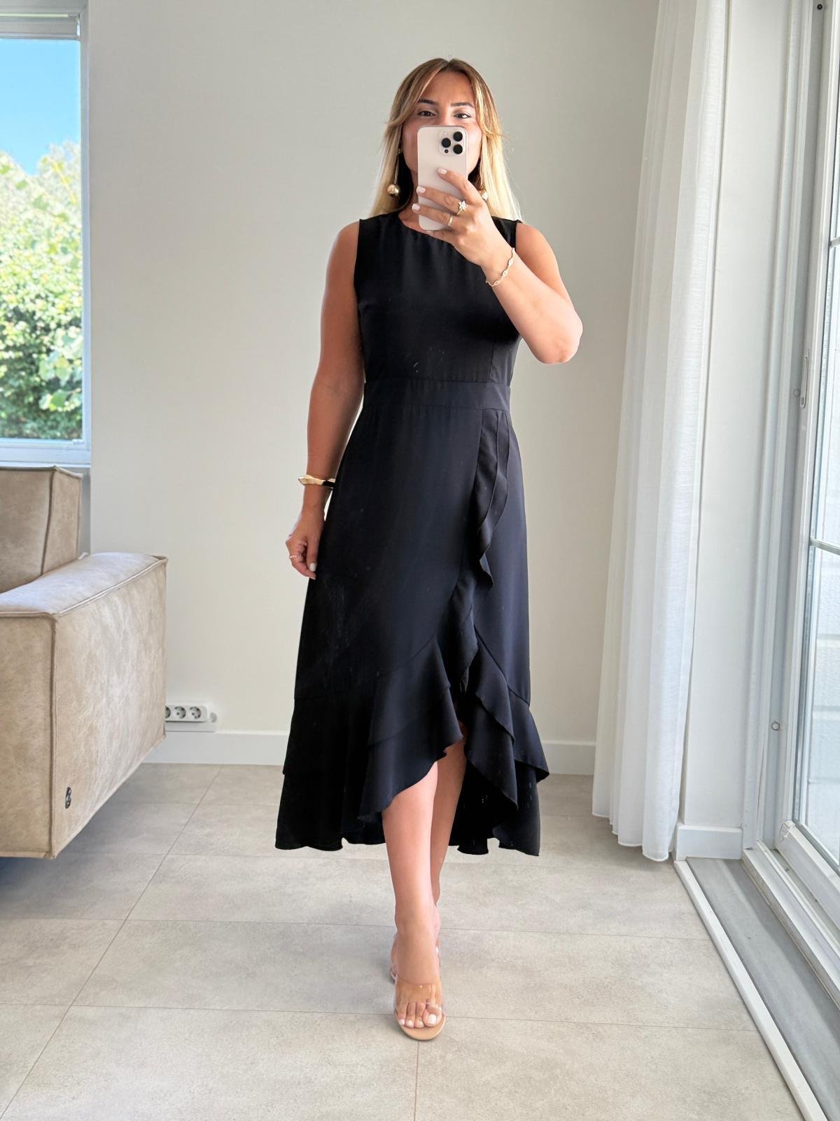 8301 Siyah Asimetrik Detay Elbise (SK-08301)