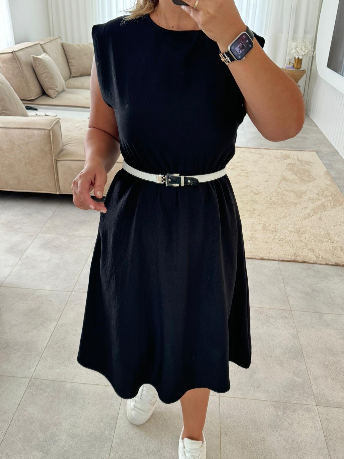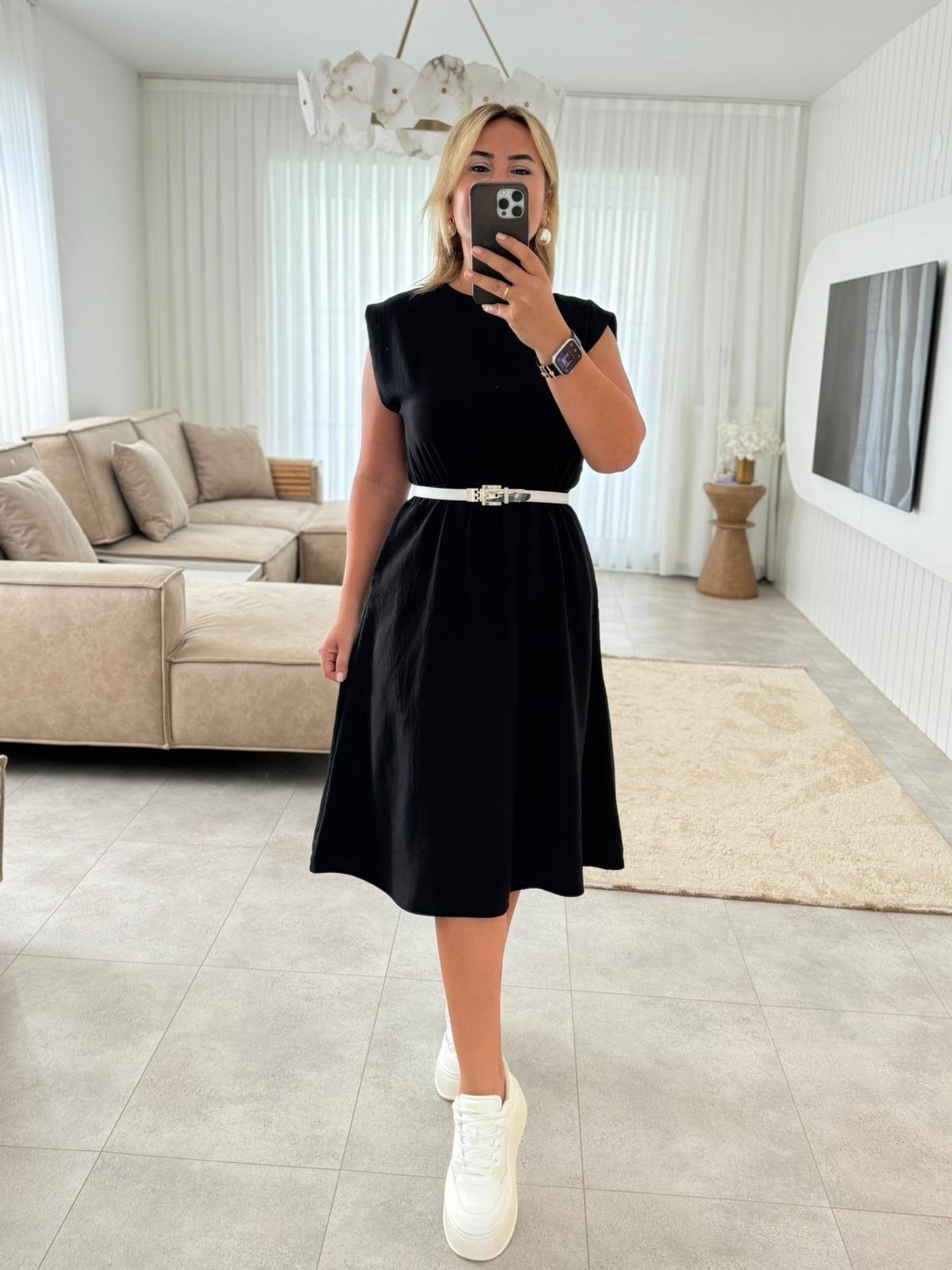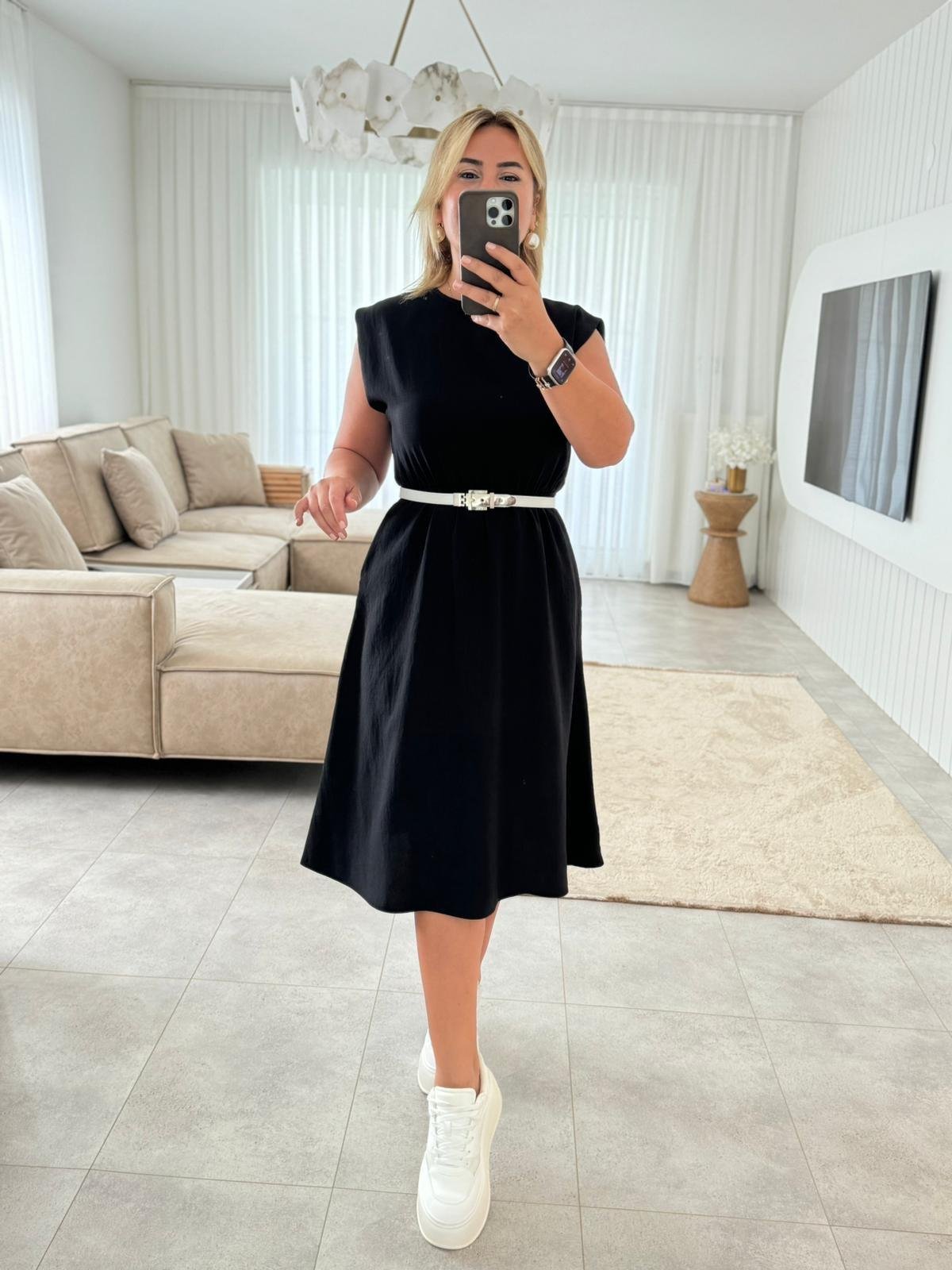 6641 Siyah Bel Lastikli Elbise