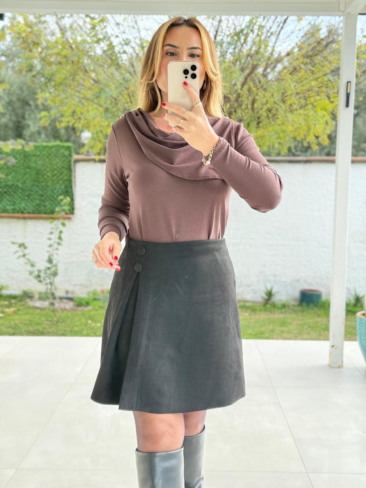 8700 Kahve Süet Etek