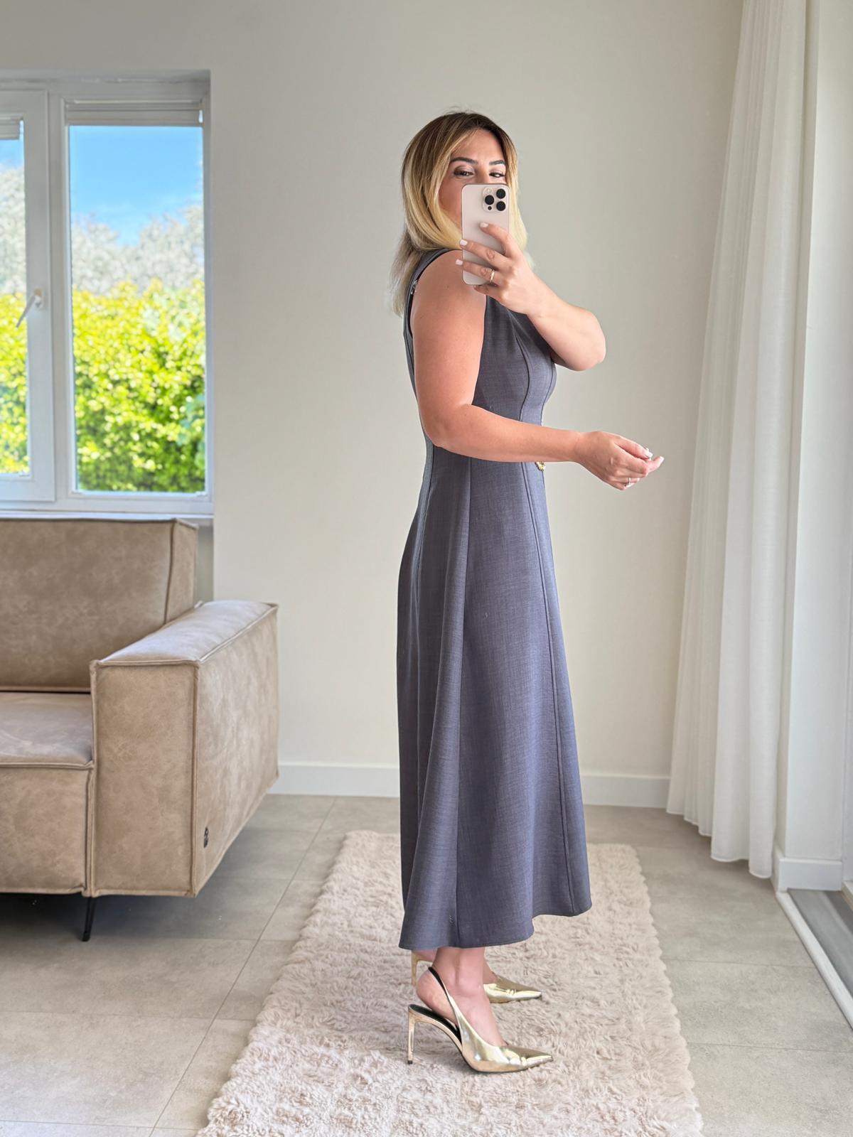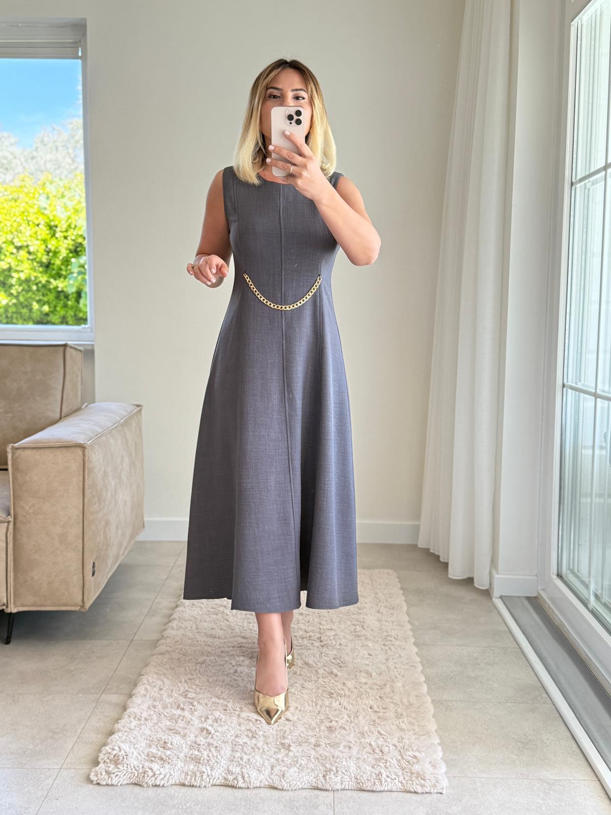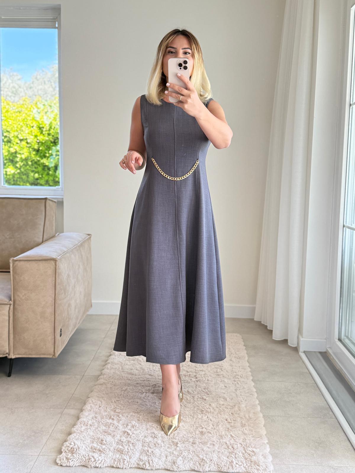 7860 Zincir Detaylı Antrasit Elbise (SK-07860)
