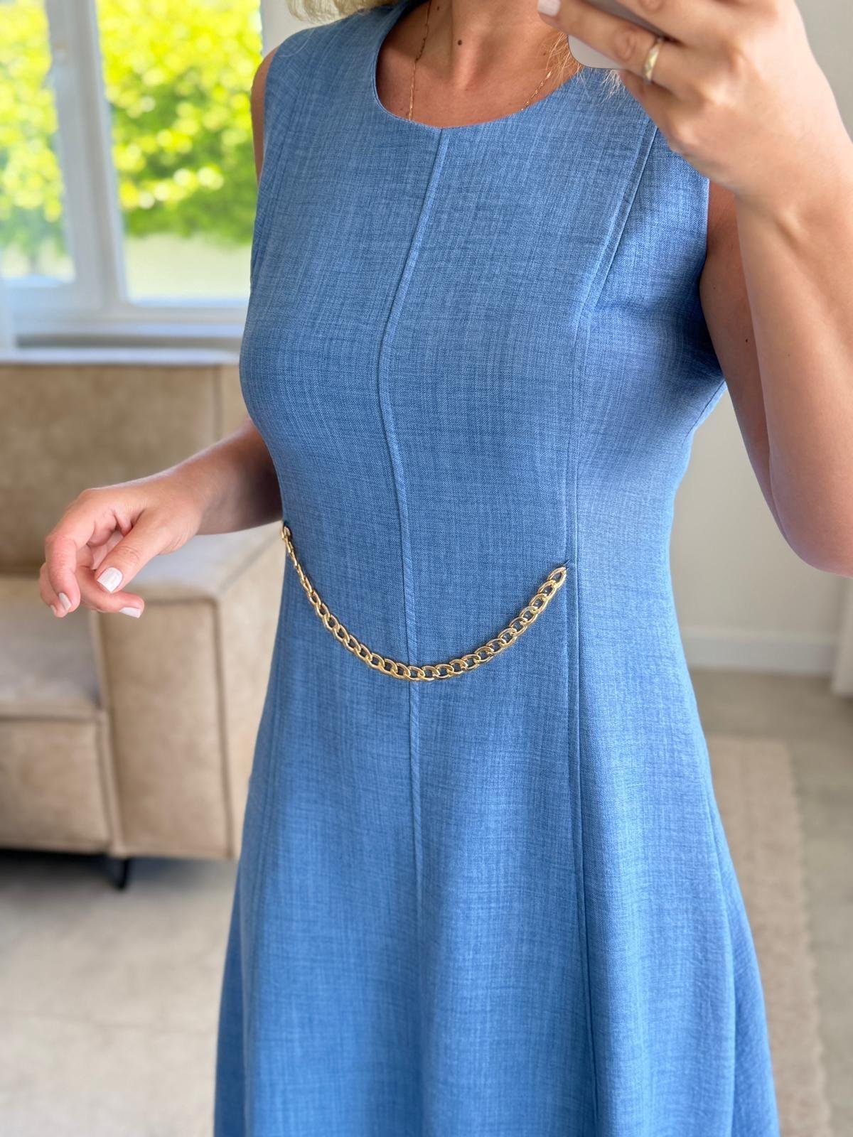 7859 Zincir Detaylı İndigo Elbise